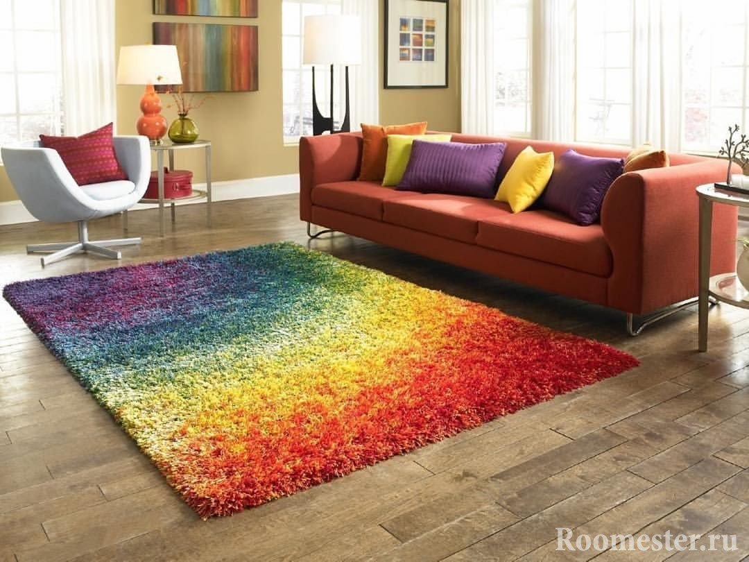 I dag løses spørgsmålet om utilgængelighed af tæpper: butikkerne er fulde af en række produkter for enhver smag og ethvert budget. Men hvad skal man gøre med andre, mere overkommelige og praktiske muligheder for gulvbelægning: parket, laminat, linoleum? Det er lettere at passe dem; du behøver ikke at "gider", om dækslet passer ind i det samlede billede af rummet. På den ene side kan man ikke undgå at bemærke bekvemmeligheden ved at bruge disse belægninger, og på den anden side ser et rum uden en interessant accent eller en original idé kedeligt og tomt ud. For interiøret tyder noget specielt på sig selv, som vil skille sig ud på baggrund af den samlede dekoration og møbler eller omvendt harmonisk kombinere for at supplere interiøret.