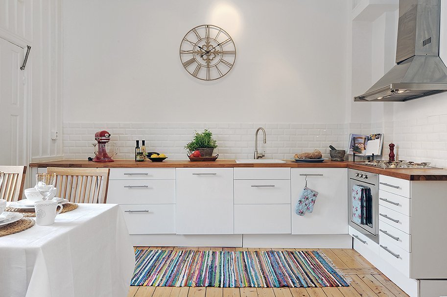 Para las habitaciones en las que se preparan alimentos, debe elegir modelos fáciles de cuidar. Estos incluyen cronómetros estrictos con agujas de metal o plástico (sin decoración) y modelos con una caja cerrada por vidrio.