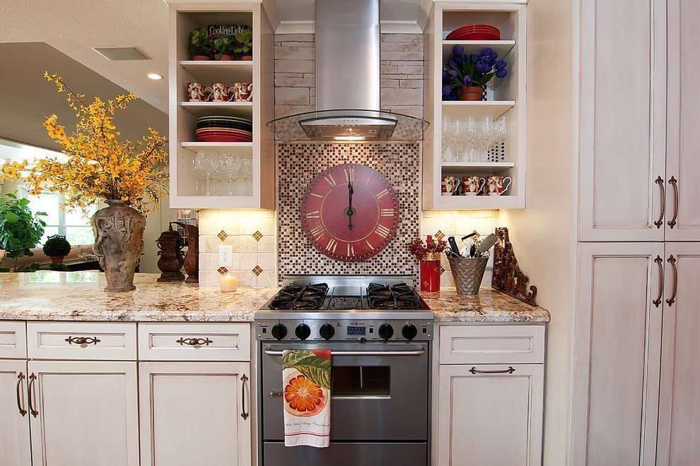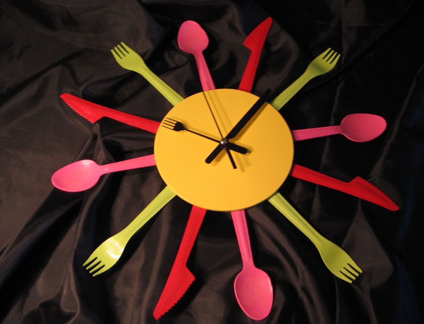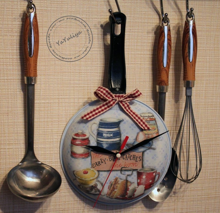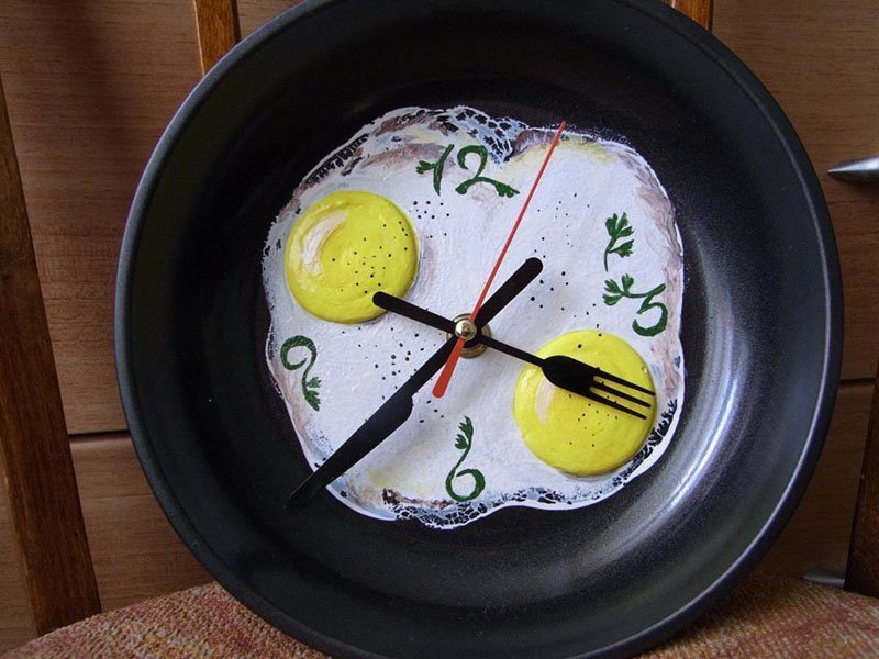 Los cronómetros no estándar ayudarán a que el diseño de cualquier cocina sea elegante y original. Estos incluyen modelos cuya base está pegada con cereales, granos de café. Se ve espectacular con una decoración de arpillera, hilo de yute, cucharas, tenedores, cucharones u omóplatos. Los cronómetros con imágenes de flores, tazas de café, bodegones son adecuados para habitaciones sin una estilística dedicada. Al mismo tiempo, para habitaciones pequeñas, es mejor elegir modelos en forma de un cuadrado pequeño, rombo, óvalo. Y para habitaciones espaciosas, los productos en forma de grandes rectángulos o círculos son adecuados. Para habitaciones decoradas en la dirección de alta tecnología o moderno, se preferirán cronómetros en tonos negros y plateados. Para complementar una lata de este estilo y modelos electrónicos con grandes números.