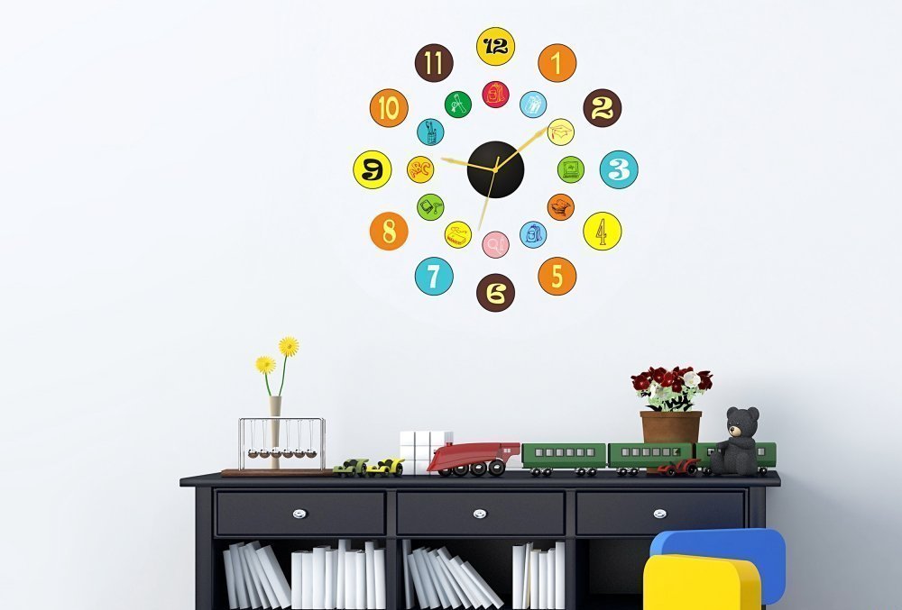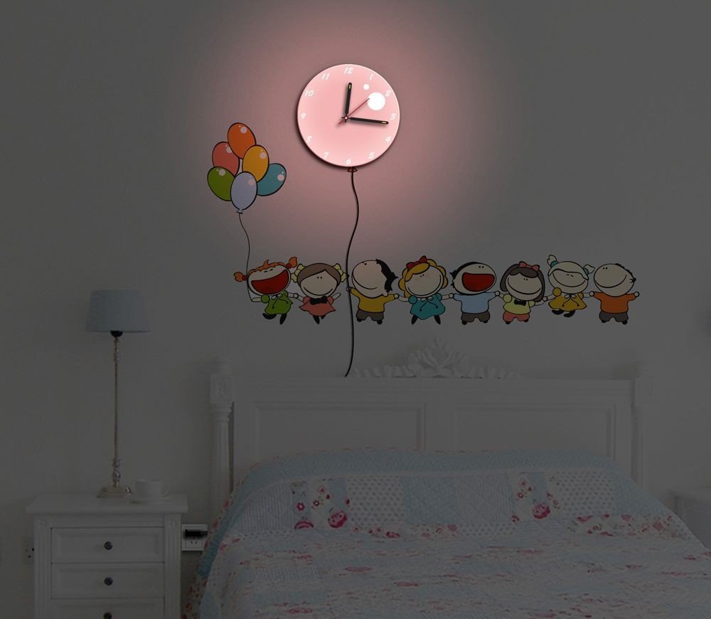 En la habitación de los niños, un cronómetro grande con un diseño no estándar se verá bien: en forma de un animal, un héroe de cuento de hadas, un personaje de dibujos animados.A los niños les gustarán los cronómetros en forma de fútbol, baloncesto. Las niñas se ajustan a modelos en forma de mariposas, corazones, globos. Pueden ser cronómetros con una caja de plástico volumétrica o plana. Una adición útil a la guardería será el mecanismo del reloj integrado en la lámpara de mesa. Como decoración original, un reloj proyector es adecuado. Podrá mostrar el tiempo en la pared, el techo. En este caso, el modelo también puede diseñar figuras de animales, estrellas y planetas. Durante el día, dichos cronómetros muestran la hora en la pantalla LED.