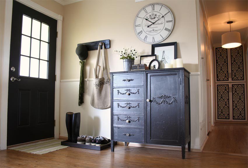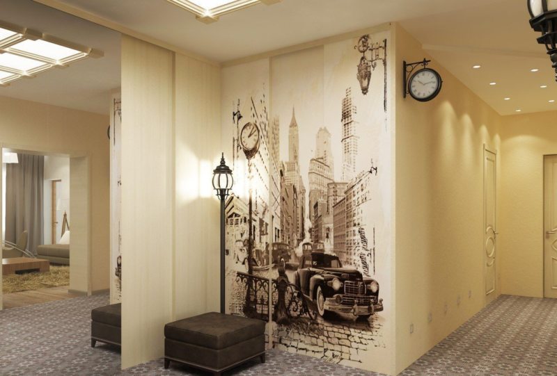Para enfatizar el estilo de un pasillo espacioso, se recomienda elegir cronómetros al aire libre. Ayudarán a los propietarios a salir de la casa a tiempo, no llegar tarde a reuniones importantes, clases, trabajo. Y cuando se instala en la esquina no limitará el espacio frontal. Al mismo tiempo, la batalla de dicho mecanismo se escuchará de forma remota en las habitaciones, no demasiado fuerte. Se recomienda instalar un producto viejo o nuevo cerca de una mesa de banquete, un pie, una mesa de café. Pero cerca de los gabinetes, el cronómetro al aire libre será inapropiado: todo su atractivo y sofisticación se perderá en el fondo de los muebles altos. Con un área pequeña, es mejor elegir un modelo que se suspenderá sobre la entrada, al lado del espejo. Tal cronómetro puede tener un diseño estándar, equipado con una discreta caja de plástico o madera. Para el estilo, es mejor dar preferencia a un modelo en forma de linterna marina, una composición con figuras en relieve de personas y animales.