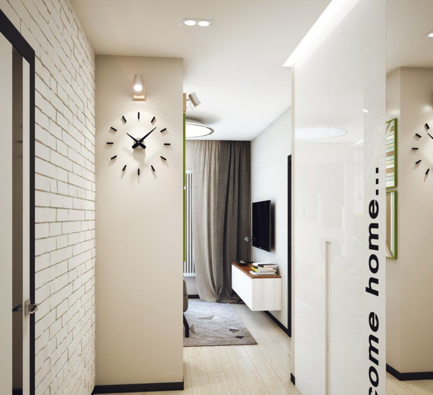 En los pasillos, se pueden instalar cronómetros de cualquier tamaño. En una habitación espaciosa, los modelos grandes y los productos pequeños se verán apropiados. Es mejor tener grandes mecanismos de relojería en una pared libre donde no haya otra decoración. Se pueden equipar con una carcasa o se pueden construir en tabiques de yeso, nichos.
