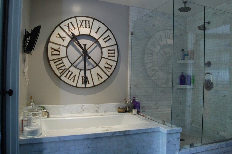 Los baños se pueden equipar con relojes mecánicos y electrónicos convencionales. Se recomienda que los primeros se ubiquen lo más lejos posible de las fuentes de suministro de agua. Obligatorio es la disponibilidad de buena ventilación. Eliminar el aire húmedo de la habitación eliminará la aparición de óxido en los mecanismos y el daño posterior a los productos. Se vende para baños y modelos especiales con cerramientos sellados. Pueden montarse en cualquier parte de la habitación.El agua que ingresa a su vivienda puede eliminarse fácilmente con una toalla o esponja. Los modelos electrónicos para baños generalmente se complementan con sensores especiales. Analizan información sobre la humedad y la temperatura del aire en la habitación. Algunos temporizadores electrónicos están equipados con un temporizador. Con su ayuda, puede realizar un seguimiento conveniente del tiempo de los procedimientos de agua y cosméticos.
