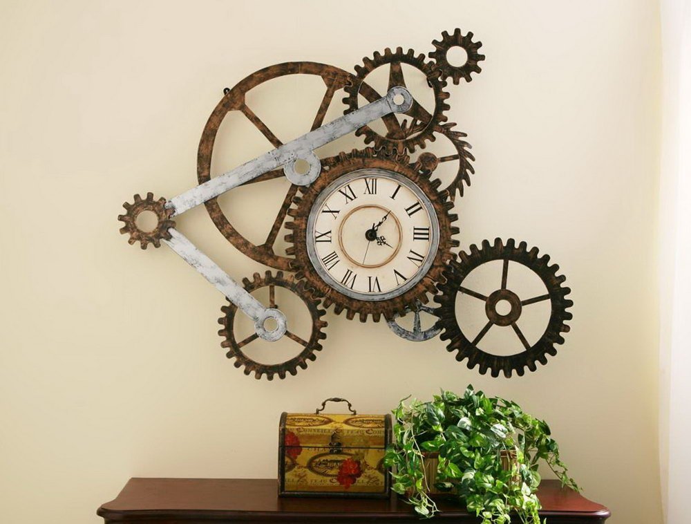 Para tal estilo, los modelos con elementos de metal y madera son adecuados. Por ejemplo, está bien complementado por mecanismos con una decoración de engranajes, "esqueletos".