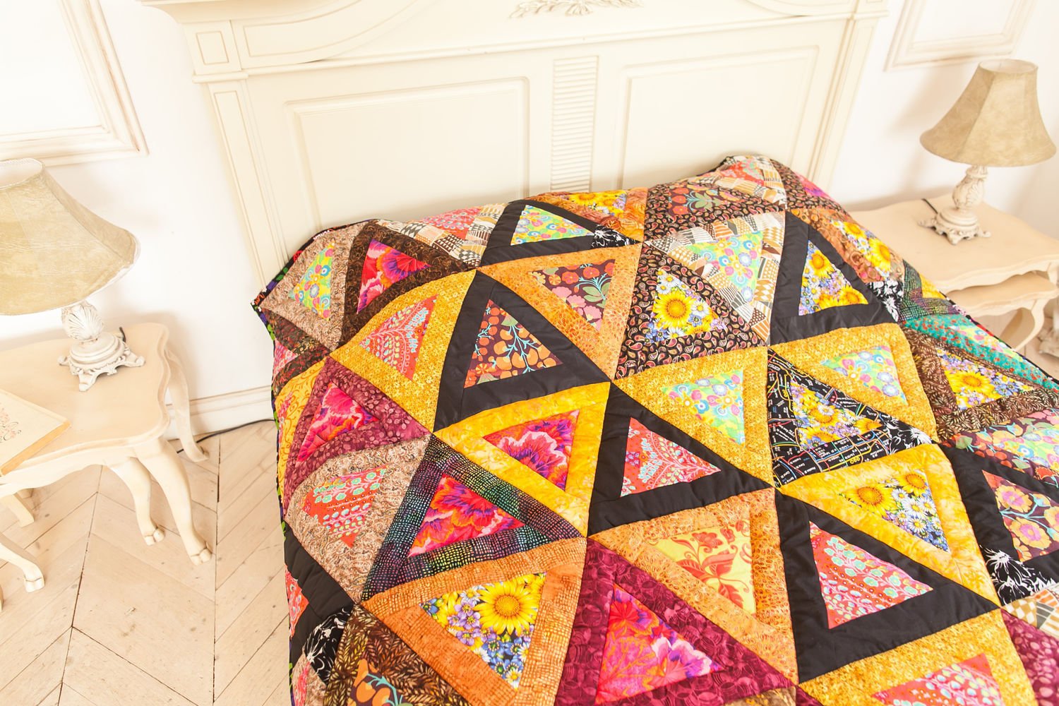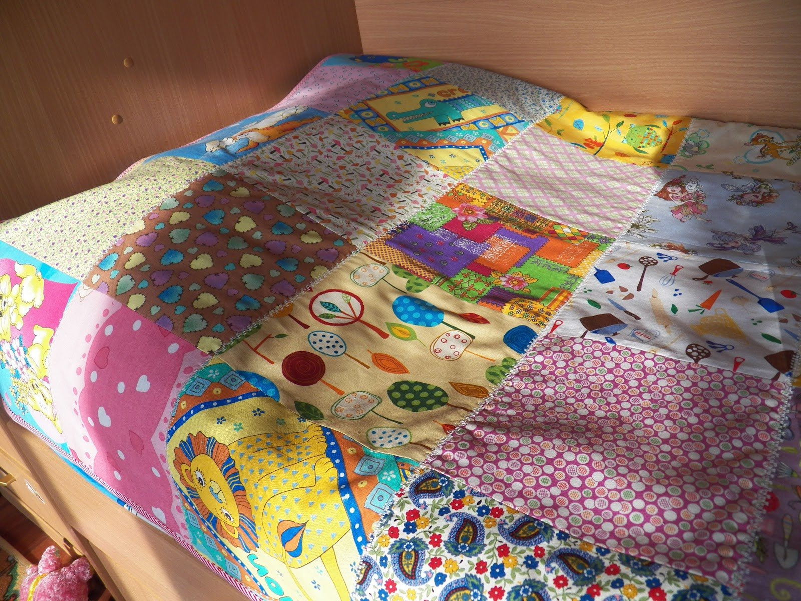 La envoltura original en la cama en presencia de tiempo libre, habilidades mínimas de costura, muchos trozos de tela colorida se hacen fácilmente de forma independiente. De los materiales, se seleccionan piezas de diferentes telas de ropa vieja: lino, chintz, algodón, satén, etc. Se cortan en idénticos, con menos frecuencia, diferentes fragmentos geométricos, cosidos de acuerdo con un patrón previamente pensado. Una manta vieja, cualquier otro relleno se usa como revestimiento. Para crear una colcha completa, debe cortar, procesar alrededor de cien a doscientas piezas pequeñas. El producto terminado se procesa bordeando.