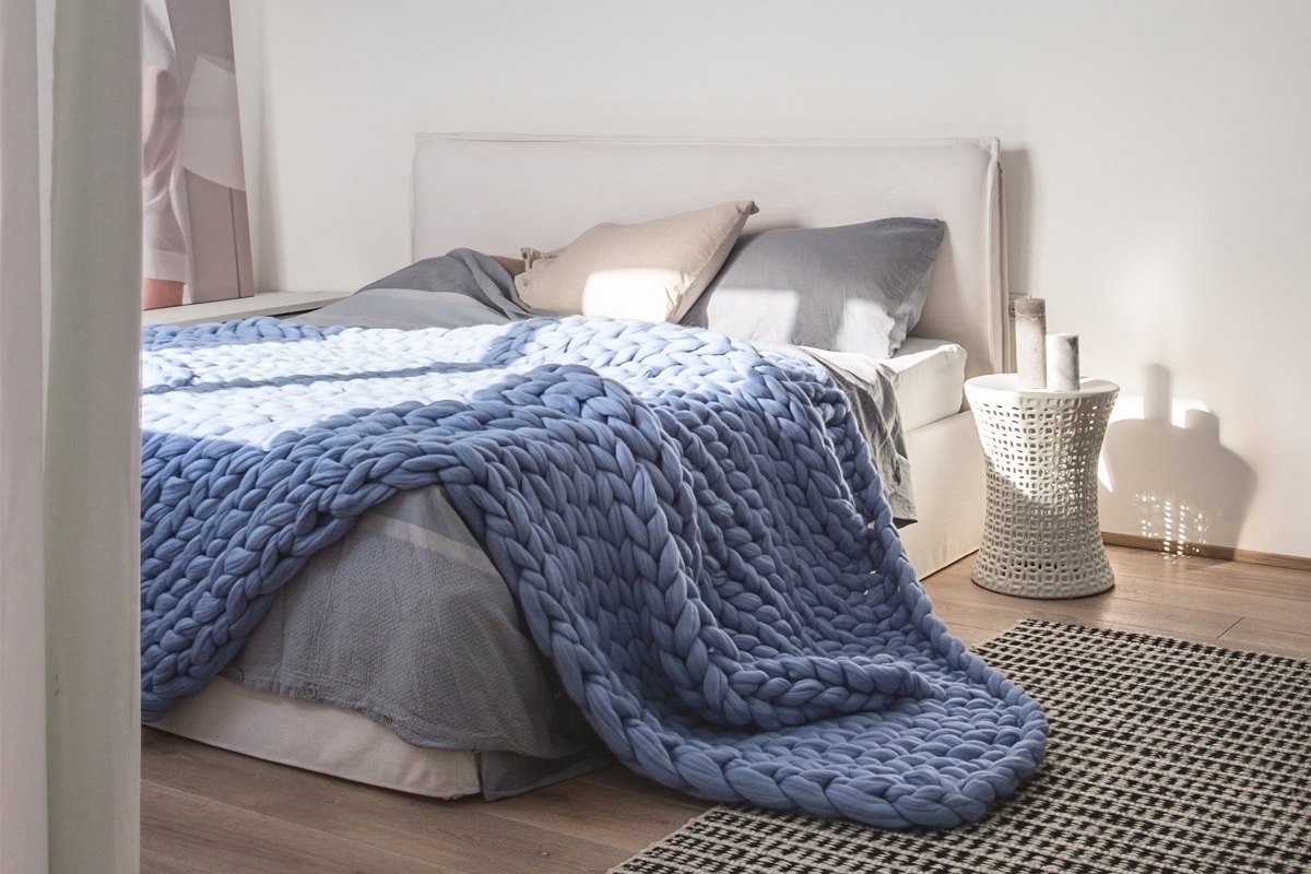 El diseño tejido en el estilo macramé está hecho de calado, se usa solo con fines decorativos o denso, texturizado, a menudo tiene un efecto de masaje, si a menudo se acuesta sobre él. Hacer una colcha de este tipo llevará mucho tiempo.