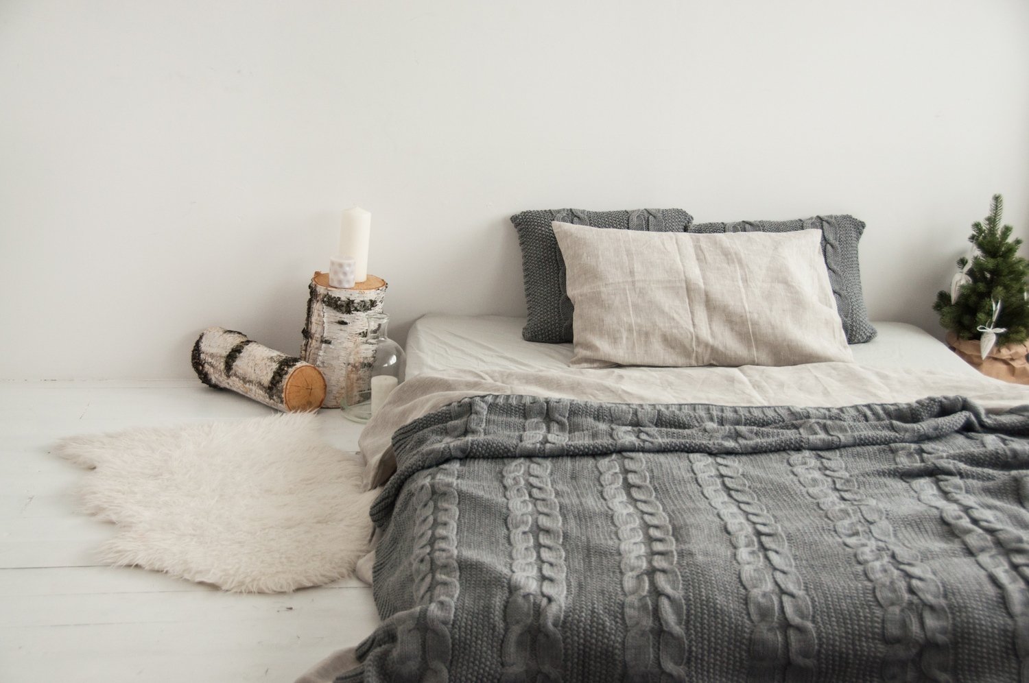 En una cama doble, es preferible cubrir una colcha ancha que cubra completamente la cama, casi llegando al piso.