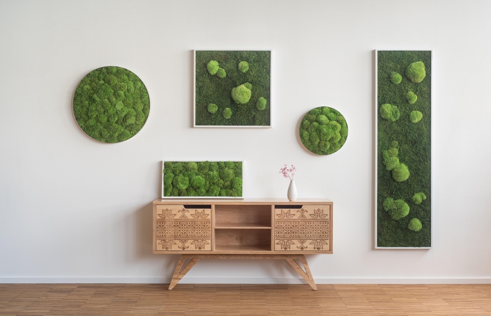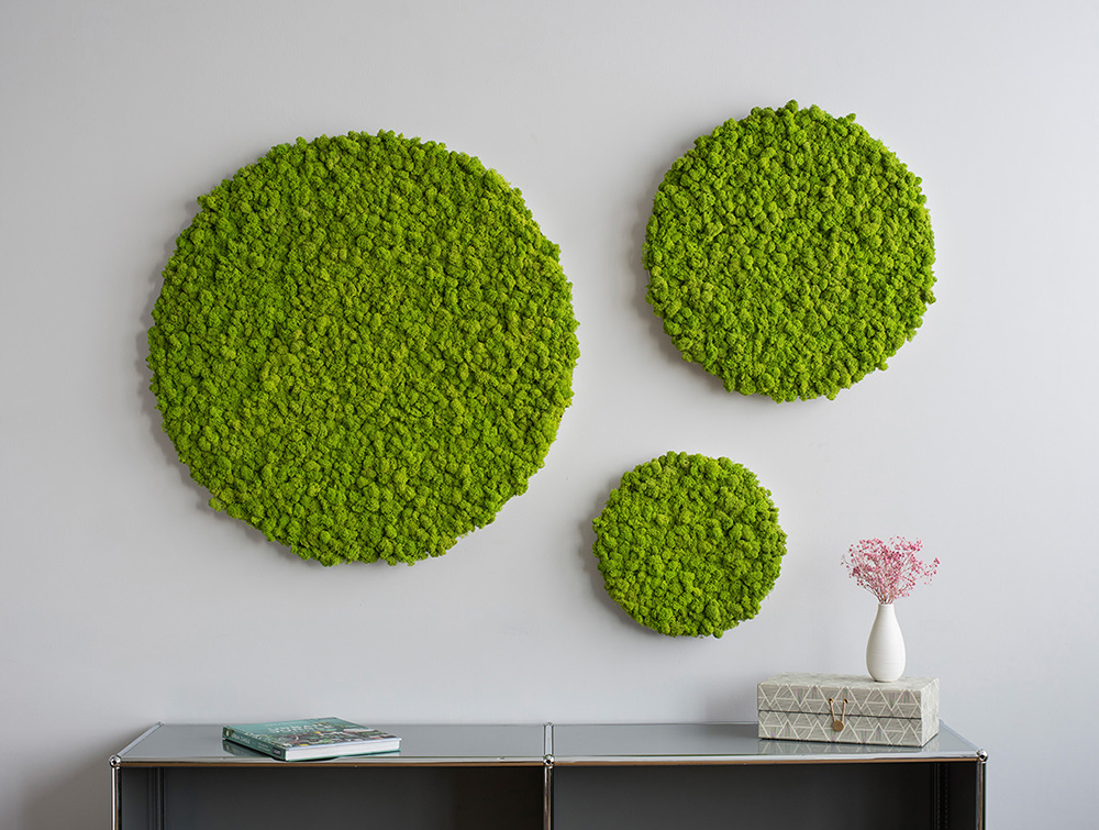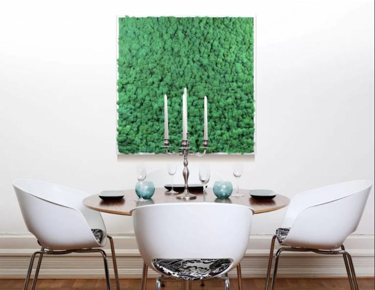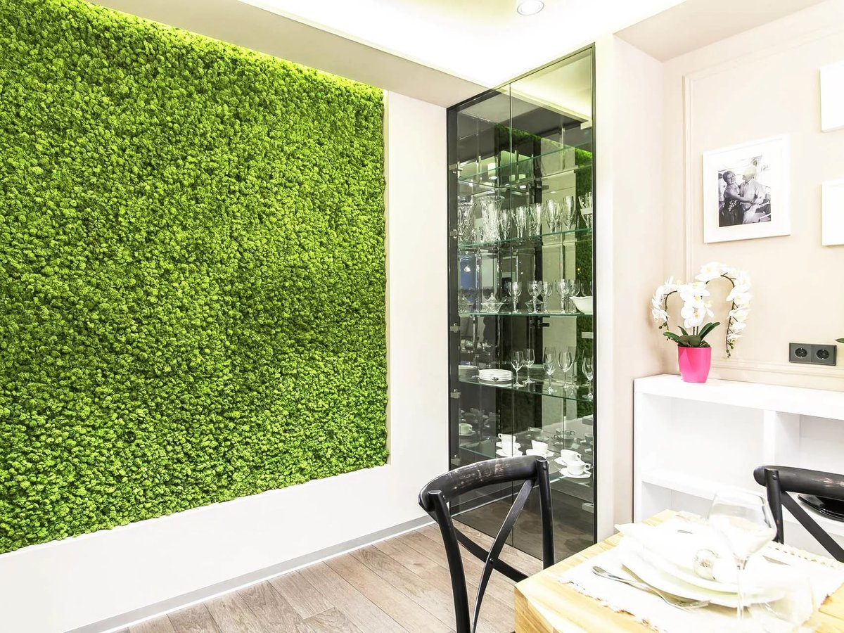 Los motivos naturales hoy están experimentando otro pico de su popularidad. El musgo natural es uno de los representantes más interesantes y buscados de la comunidad de materiales ecológicos.