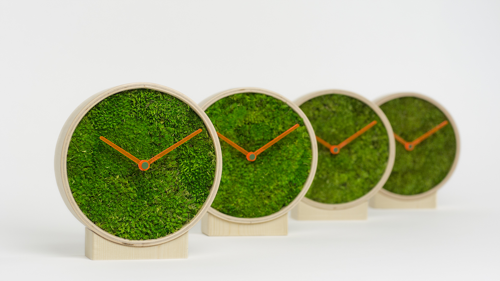 Con la ayuda de musgo, puede convertir cualquier reloj en un objeto de diseño único. Es suficiente pegar un lienzo, trozos o franjas de musgo en su marco, y al instante se convierten en una obra de arte ecológico. El reloj llamará la atención independientemente de si solo se resaltan números, si se hace un borde o si se cubre toda la superficie.