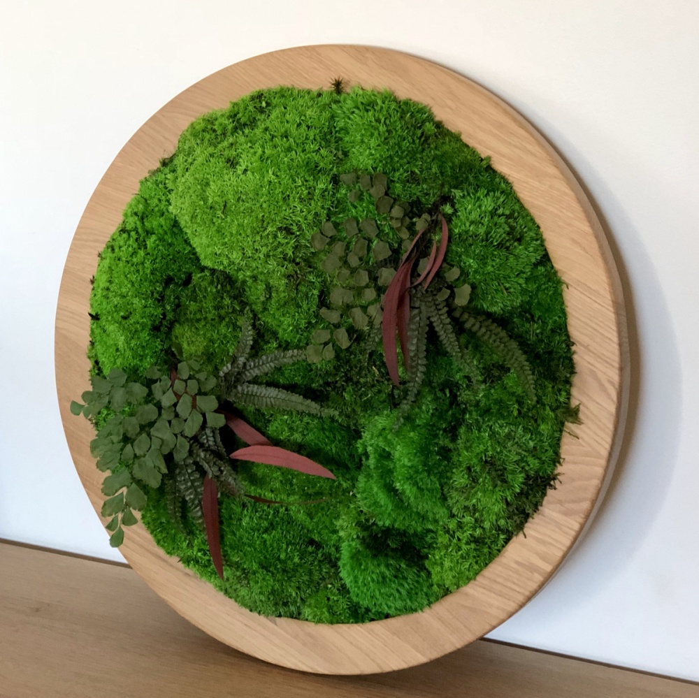 La gente aprendió a estabilizar el musgo ya en los años 40 del siglo XX. Una de las primeras patentes para su producción se otorgó en los Estados Unidos en 1949. Las primeras tecnologías se basaron en el uso de soluciones salinas y tinción con la ayuda de varios pigmentos de color. El material estabilizado se utilizó como una adición a los botones florales, que fueron los personajes principales de la mayoría de las composiciones. Hoy en día, los diseñadores prefieren cada vez más paneles y pinturas de musgo.