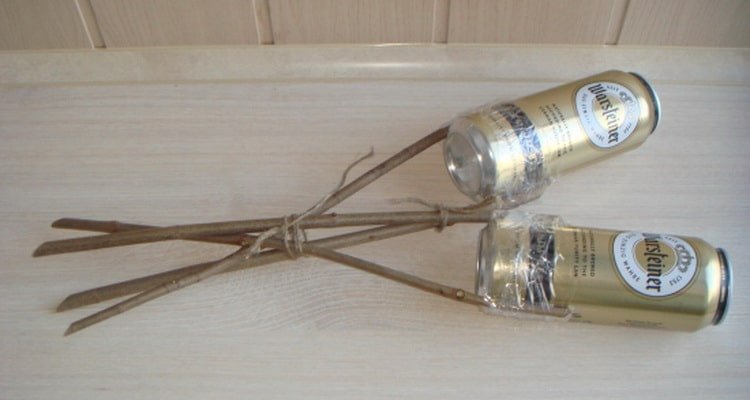 Para hacer un ramo de boda original y su hermoso diseño, necesitará una botella de cualquier bebida alcohólica, hermosas ramitas artificiales, cintas, papel corrugado para decoración y suministros. Las instrucciones paso a paso son las siguientes: