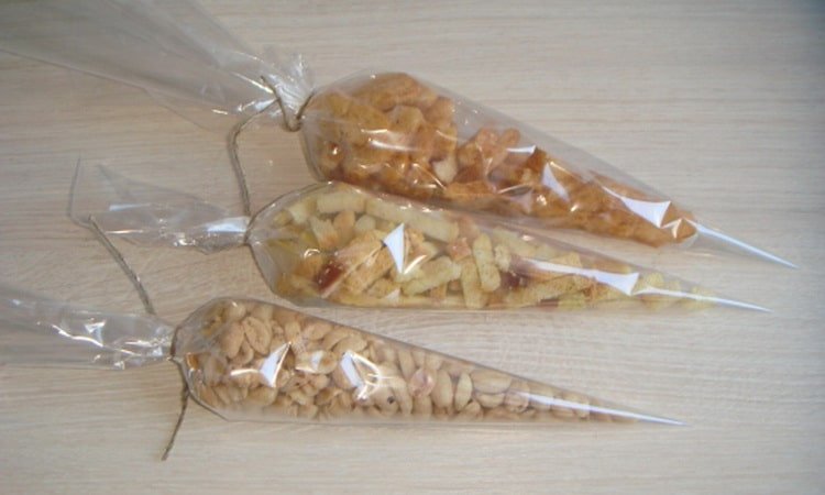 Paquetes La forma más fácil y popular de envolver. El celofán retiene bien la humedad y, por lo tanto, es ideal para transportar y almacenar plantas vivas. Dichos paquetes son universales, estándar en forma de cono y originales, en forma de vidrio.