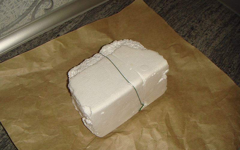 En la siguiente etapa, hacemos el marco del animal a partir de una esponja floral. Recorta partes del cuerpo, sumérgelas en agua y asegúralas con brochetas. Debe recordarse que las flores aún se insertarán en la base, por lo tanto, es necesario saber de antemano el tamaño de las futuras artesanías.