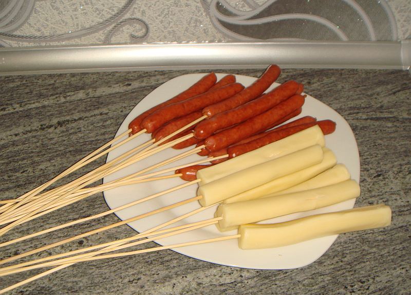 Al ensartar frutas en brochetas, no deben perforarse. Una crema es suficiente para una crema pequeña. Para asegurarse de que las frutas se ajusten bien, deben agitarse, sujetando los pinchos.
