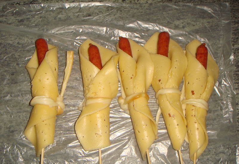 El proceso de hacer un ramo es muy simple. Todos los ingredientes deben usarse en brochetas, sujete los paquetes a los palitos con cinta adhesiva. Nos apoyamos contra la botella del pincho alrededor de la circunferencia y la pegamos bien con cinta adhesiva. Combine los espacios en blanco en un paquete y envuélvalos con cinta adhesiva. Organizamos los productos según el plan y los envolvemos con papel.