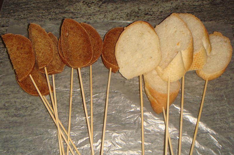 Perforamos las bayas con el extremo afilado del pincho directamente a través de las colas;