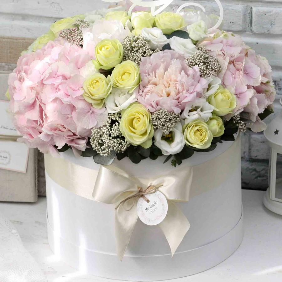 El arreglo floral en la caja no solo es conveniente y práctico, sino que también será una presentación espectacular para cualquier celebración. Para el regalo original no necesita un florero, se puede poner en cualquier lugar. Esto lo hace conveniente para la transmisión en lugares concurridos, cafeterías, cines.