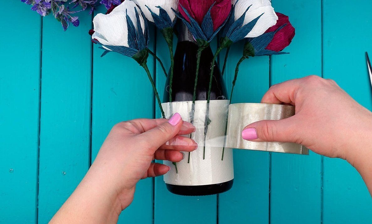 Hacer ramos de flores con una botella de vino o champagne
