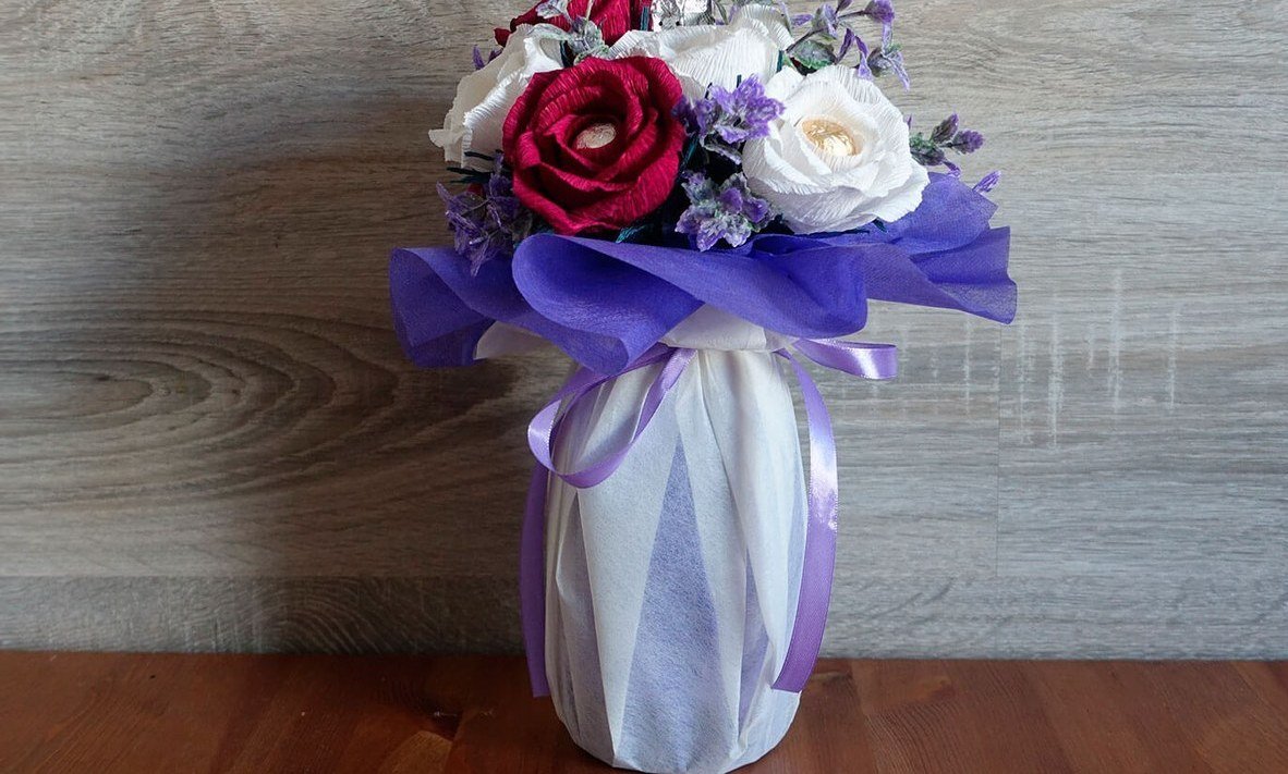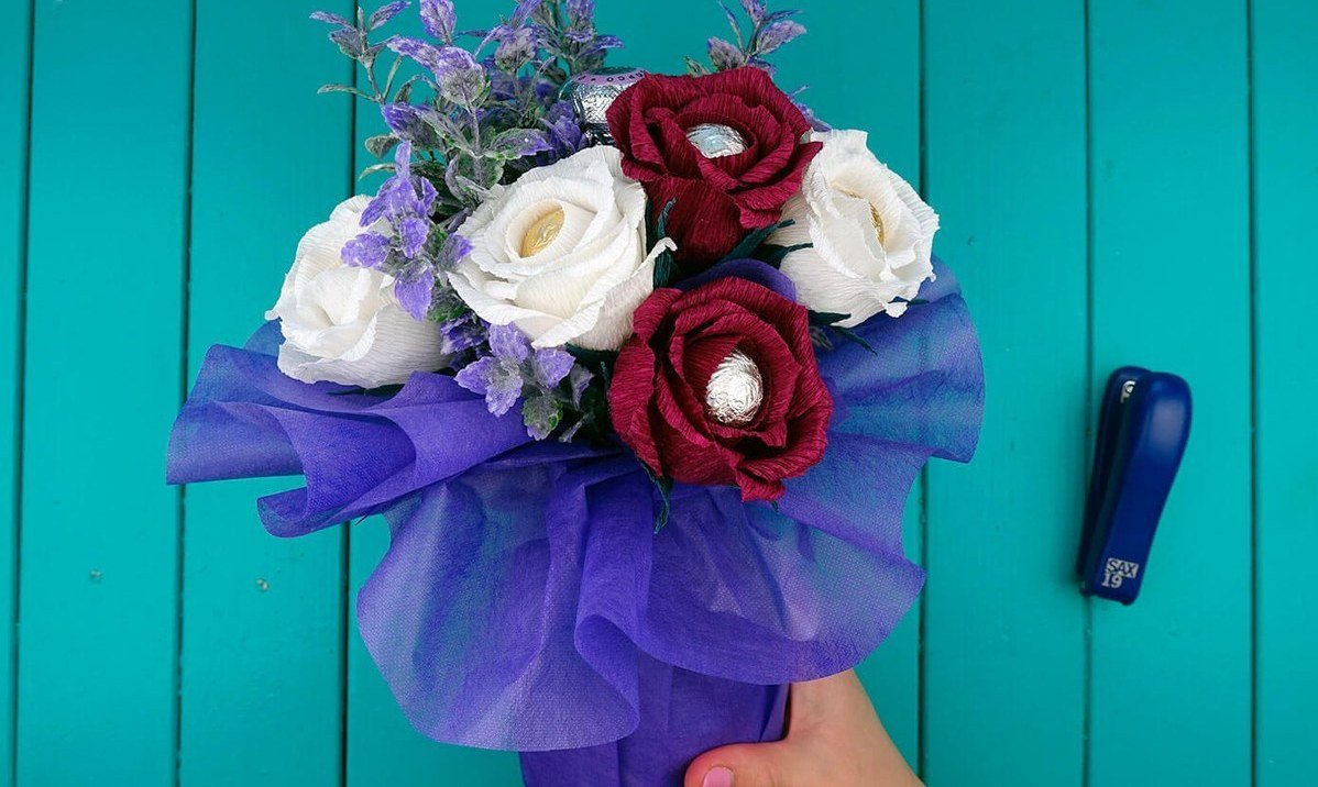 Para hacer un ramo hermoso y original, no es necesario contactar a los floristas. Puede que ni siquiera sea un arreglo floral, sino un regalo inusual de materiales improvisados para los recién casados, colegas de trabajo. Puede aprender instrucciones simples por su cuenta, guiado por una foto o video. El proceso de fabricación traerá no menos placer que la presentación en sí y el ambiente festivo.
