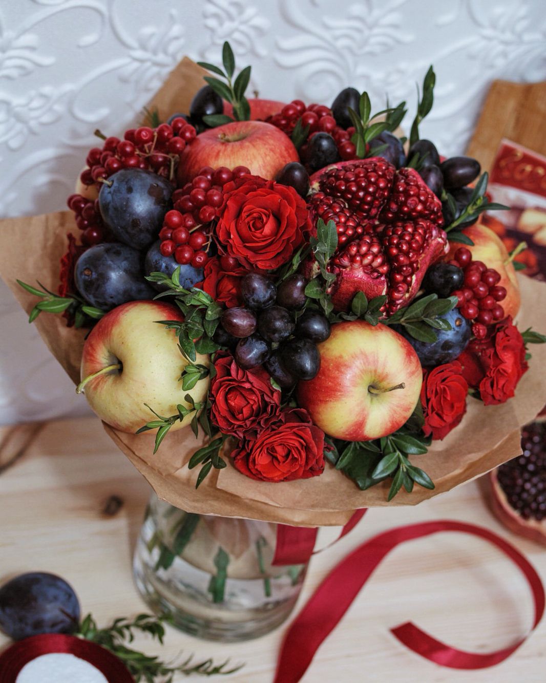 Cómo hacer un ramo con manzanas, granadas y ciruelas