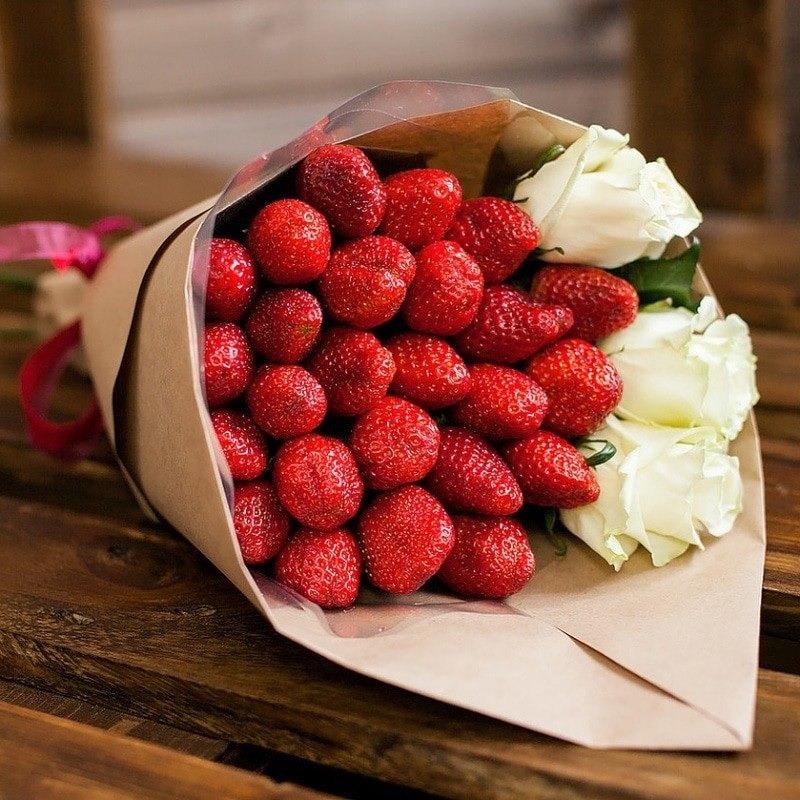 Las tiernas y jugosas fresas, reunidas en un ramo, serán un gran regalo para cualquier fiesta romántica. Al recolectar una composición tan frágil, es necesario tratar la conexión de los elementos con mucho cuidado.Todas las bayas deben ser del mismo tamaño y forma. También deberá preparar cintas, brochetas, hermosos embalajes y cintas. Las siguientes instrucciones paso a paso lo ayudarán a hacer un ramo original de fresas usted mismo: