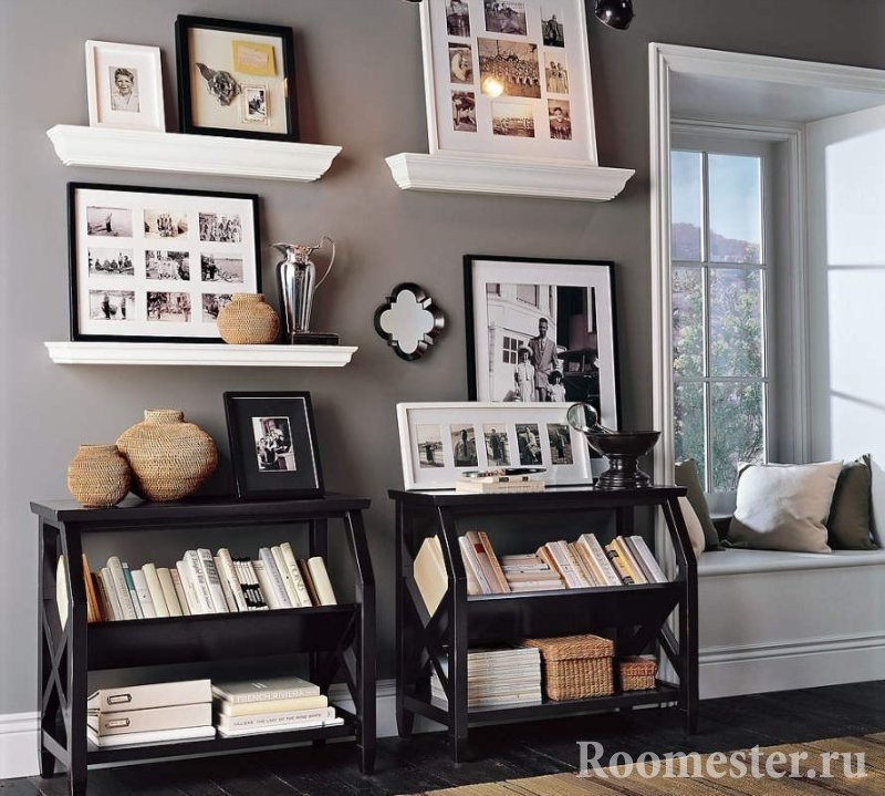 Un estante simple y ordinario se verá hermoso con una decoración elegante y bien elegida. Accesorios interesantes, flores, libros, dispuestos en color, serán el foco principal de este tándem. Después de todo, un estante, incluso el más inusual, está lejos de todo, pero es solo una base.