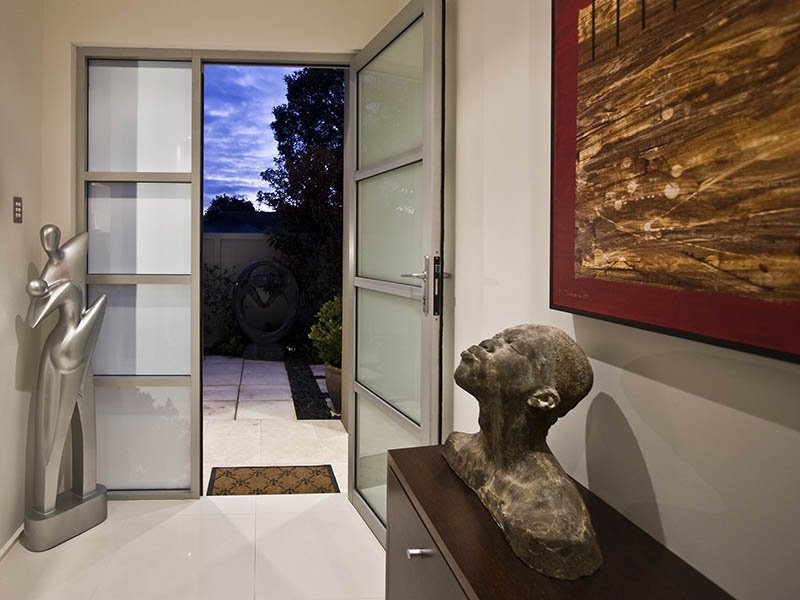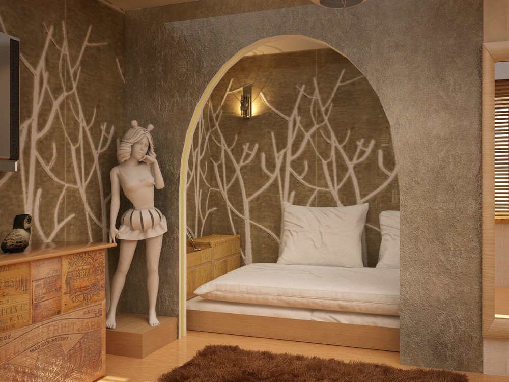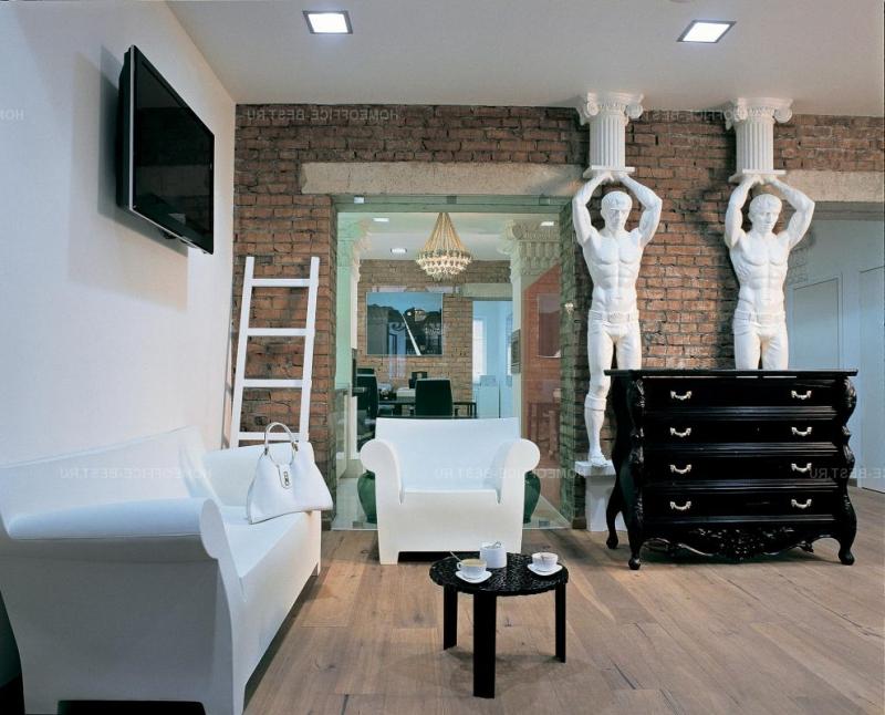 Dependiendo del tamaño, las figuras se colocan en el piso (grandes), mesas (más pequeñas que el tamaño promedio) o estanterías (pequeñas). Algunos son para lugares específicos. Parte de las esculturas se pueden representar como un solo fragmento. En casa, parece inusual; coincide con el concepto de arte moderno. El salón se puede decorar con varias estatuas grandes que llaman la atención. En el dormitorio vale la pena colocar una figura de la forma original o una figura que represente a una pareja enamorada. Pequeñas esculturas de colores fríos se colocan en la cocina. En la guardería es mejor comprar pequeñas figuras irrompibles. Deben colocarse en estantes. La solución clásica es colocar esculturas a ambos lados de la chimenea y crear un relieve encima. Las figuras deben ser mucho más oscuras o más claras que el esquema de color de las paredes.Una combinación de diferentes materiales al decorar con esculturas es bienvenida.
