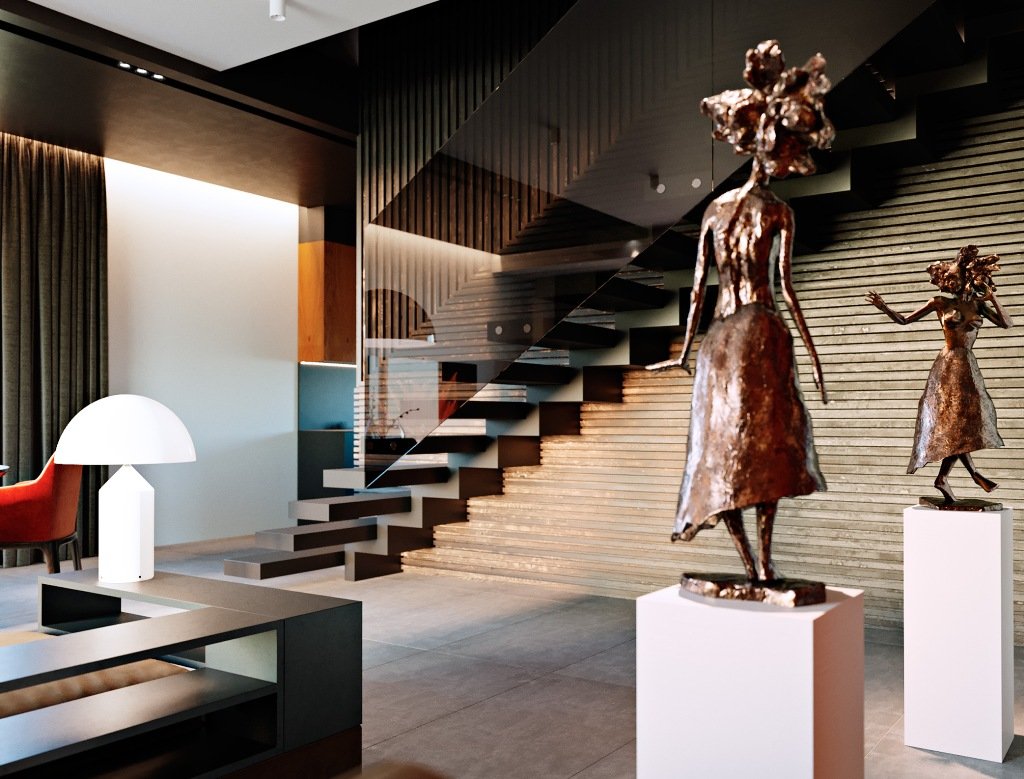 Al elegir una figura, el comprador es guiado por dónde colocarlo: en un apartamento, casa de campo o jardín. Antes de comprar, debe buscar un especialista o familiarizarse con este tipo de arte. El interior utiliza principalmente escultura de caballete. Está diseñado para un examen minucioso, compatible con cualquier entorno,se puede realizar a tamaño completo o se puede reducir. La escultura de caballete puede contener significados ocultos. Las figuras pueden aligerar la situación, saturadas de líneas rectas, o viceversa, para agregarle rigor. Para decorar el interior con un estilo moderno, se necesitan formas abstractas, no una simple figura humana. Los bustos son apropiados en el diseño clásico, hecho antiguo. El tamaño de las figuras se selecciona según las dimensiones de la habitación para que se vean armoniosas.