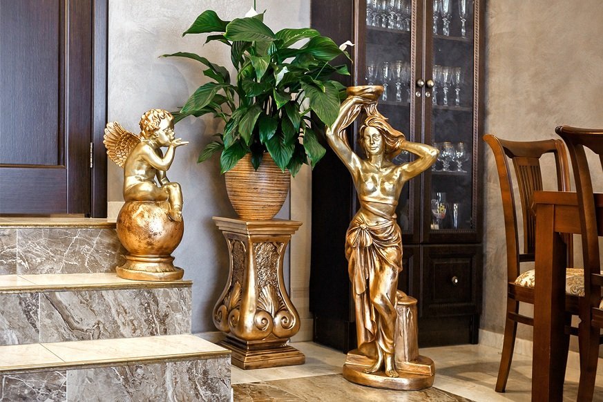 La decoración con figuras es una técnica clásica en el diseño de habitaciones. No hay restricciones en términos de forma, material o propósito funcional: pueden ser figuras de escritorio, grandes monumentos y figuras talladas en las rocas. Sin embargo, las esculturas no son una parte obligatoria de la decoración hasta el siglo XIX. inclusive, estuvieron presentes en todas las casas grandes, y en la antigüedad fueron elementos integrales de la construcción de fachadas. Aparecieron nuevas formas y géneros, se mejoró la tecnología de fabricación. Hay tres formas comunes de crear esculturas. El método de plastia implica aumentar el volumen utilizando un material específico. Para hacer esto, use cera o arcilla. Esculpir es cortar el exceso de piezas y girar para obtener el resultado final. La base de este método es piedra, madera y otros materiales.Fundición: verter bronce fundido u otro metal o aleación en un molde preparado previamente.