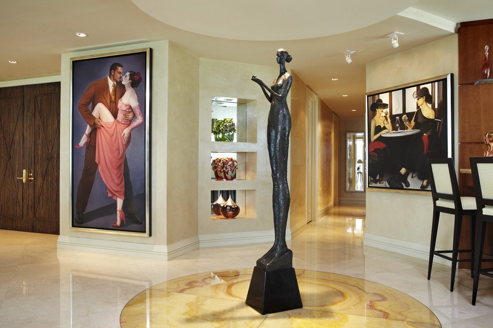 La escultura es un elemento clásico del interior. La disposición correcta de las figuras requiere un conocimiento elemental sobre la compatibilidad de los materiales con el estilo en el que se hace la habitación. Las más universales son las figuritas pequeñas: son adecuadas para la implementación de tendencias históricas y modernas en el diseño, no atraen demasiada atención, luchan con menos frecuencia, son convenientes en la operación y son más baratas. La principal ventaja de las esculturas hechas de piedras semipreciosas es la combinación de colores. Puedes crear una figura con tus propias manos. Sin habilidades especiales, puedes hacer una escultura de varias partes metálicas. Pero para crear una figura en papel necesitarás tomar cursos especiales. La escultura en el interior tiene un propósito universal: a los huéspedes les puede gustar, despertar la aprobación de los amantes del arte e interesar a los niños. Gracias a los precios flexibles, está disponible para todos.