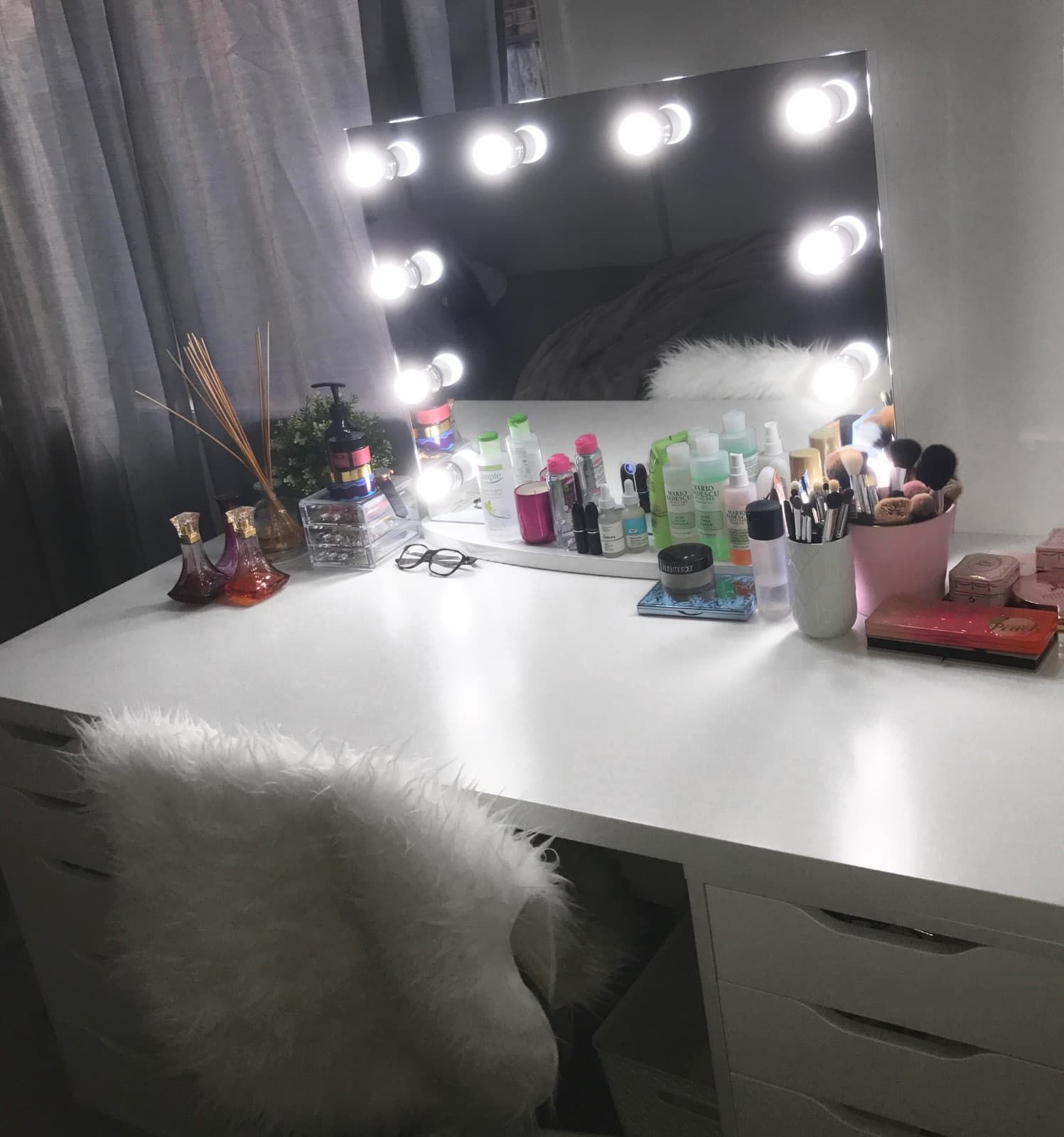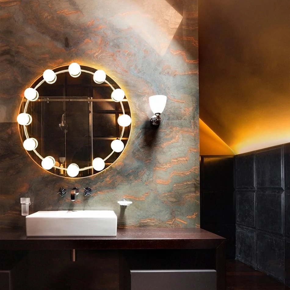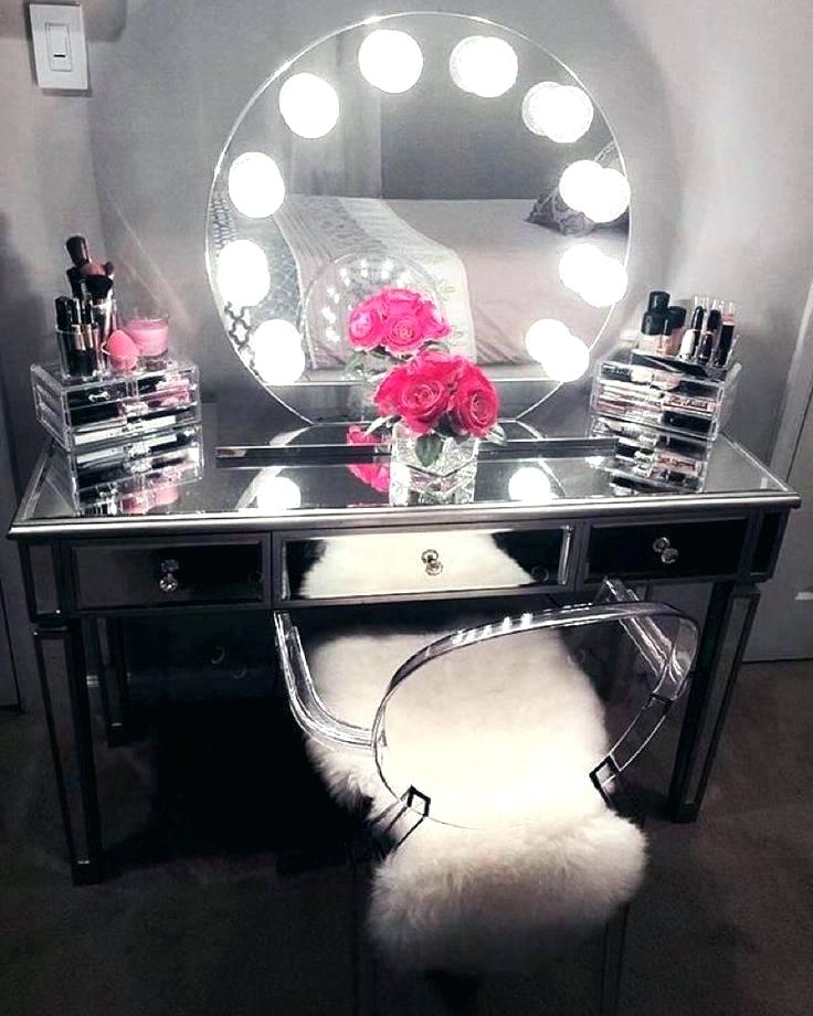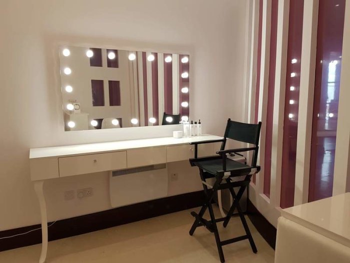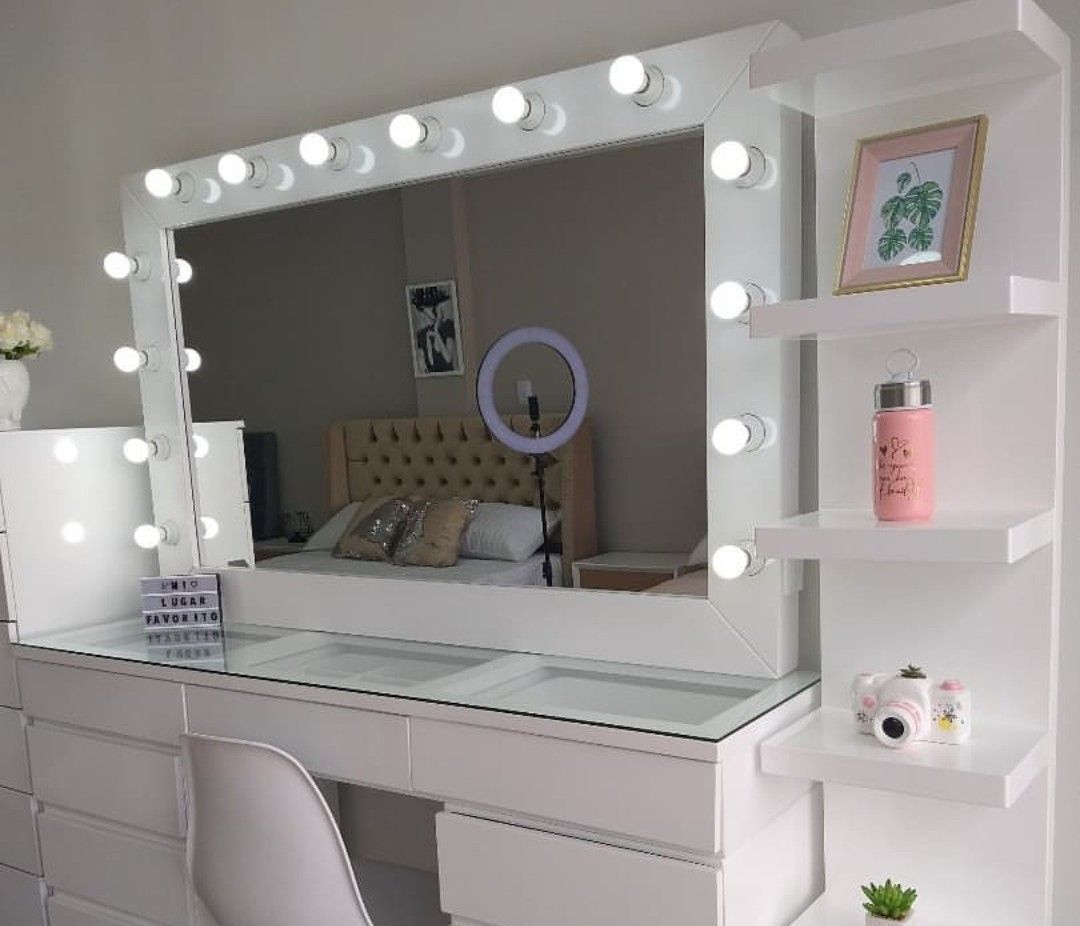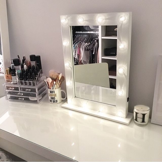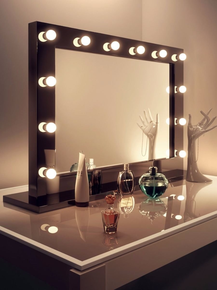 Ahora este mueble se puede encontrar no solo en las oficinas de maquilladores profesionales, sino también en el interior de muchas casas privadas. Los espejos con lámparas se instalan en el vestidor, baño, dormitorio. Las mujeres los usan para maquillaje de alta calidad, los hombres, incluso para afeitarse la barba, su corte de pelo rizado.
