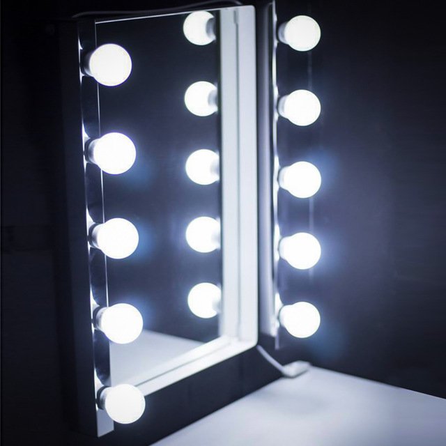 Los espejos de maquillaje con bombillas aparecieron originalmente en teatros, cabarets. Se utilizaron para crear maquillaje para actores, bailarines, que es un componente importante de la imagen del escenario. El papel de la luz de fondo es difícil de sobreestimar. Ayuda a eliminar las sombras de la cara, para ver los defectos más pequeños de la piel. Esto le permite cambiar de manera más efectiva la apariencia del artista, hacerlo más viejo o más joven, saludable o doloroso.
