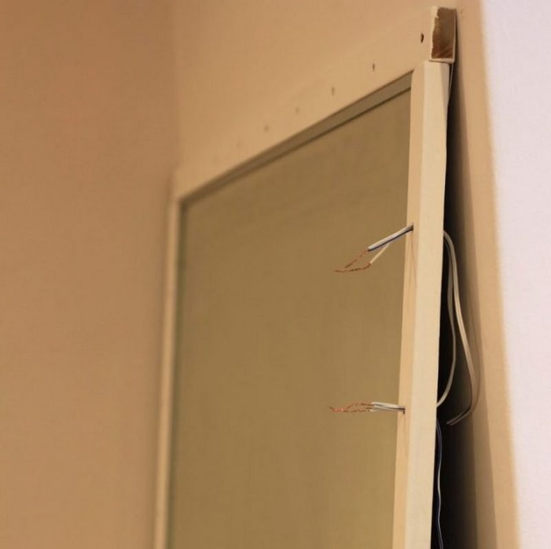 Si todo funciona bien, instale un espejo, móntelo en clavos líquidos. Además, se pueden martillar varios dientes pequeños desde atrás, lo que evitará que el lienzo se caiga.