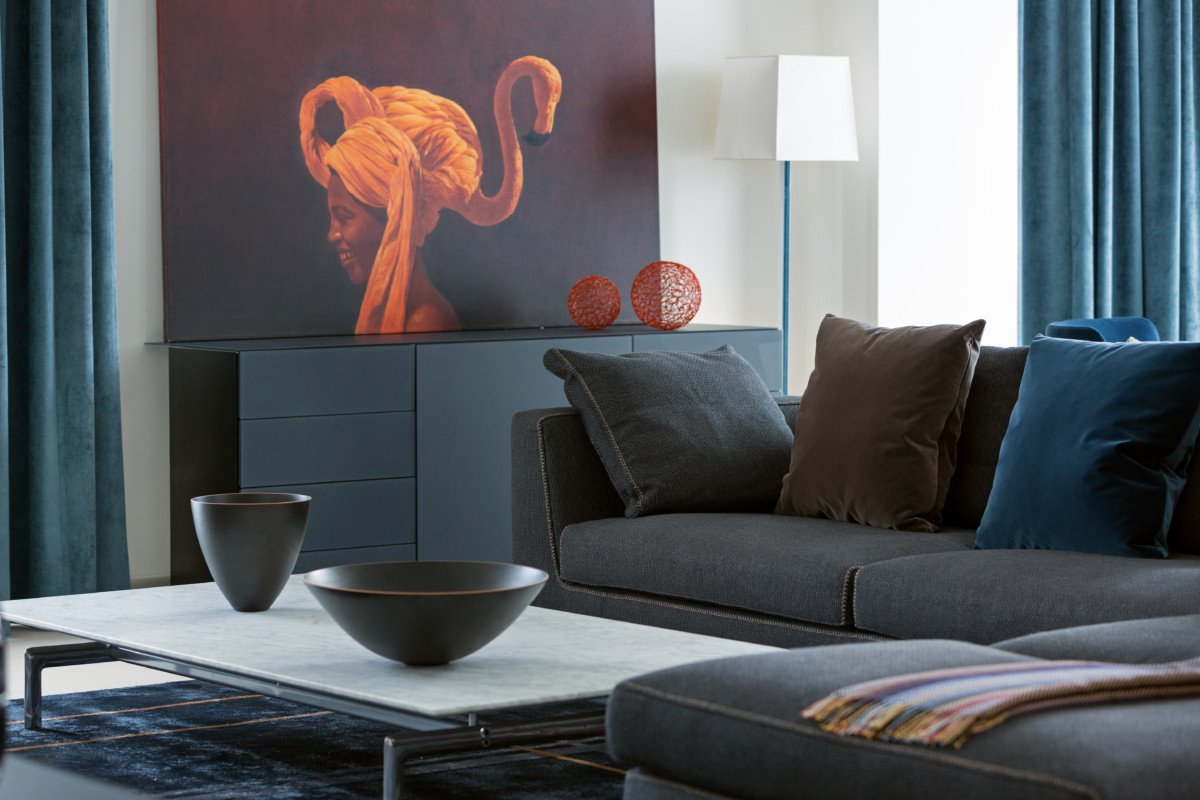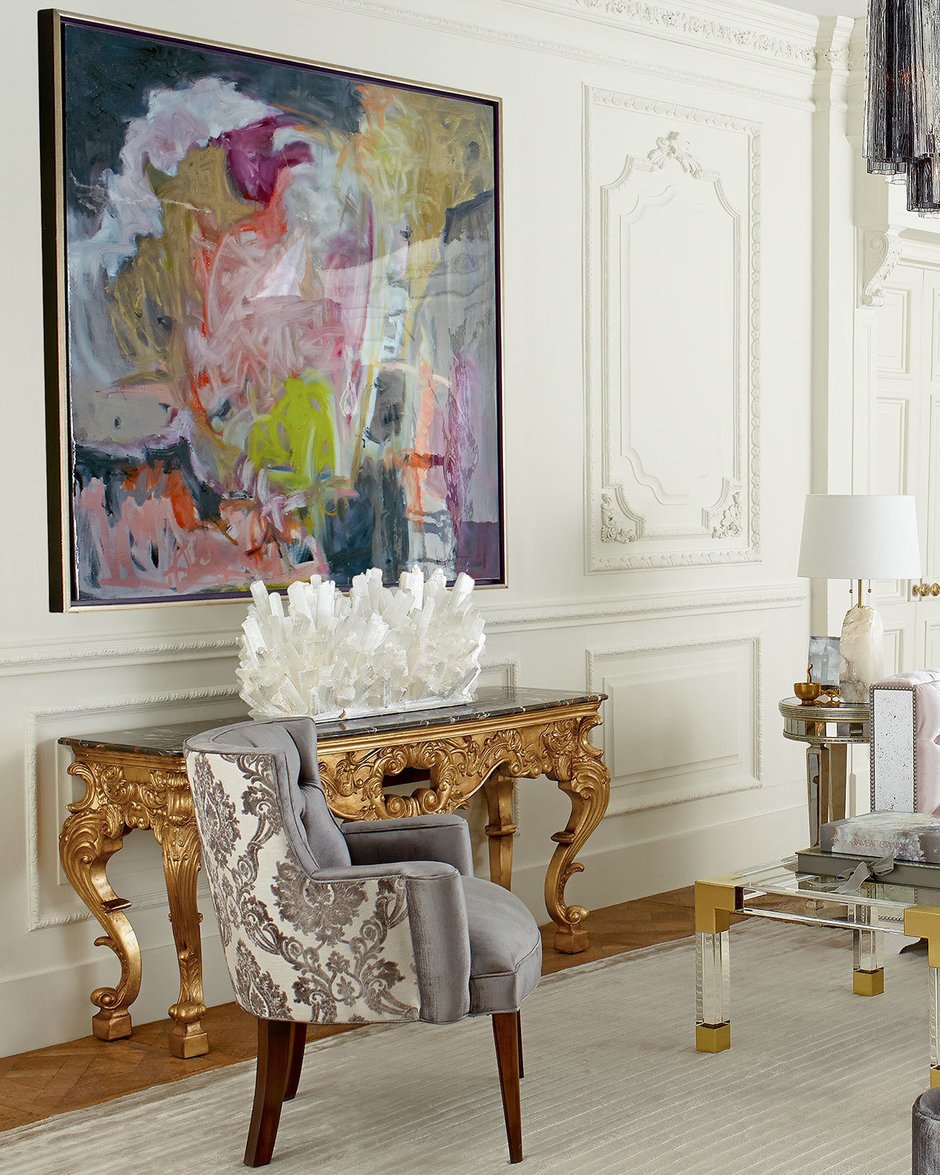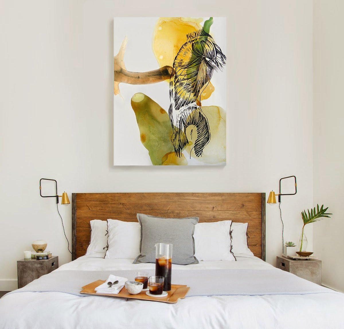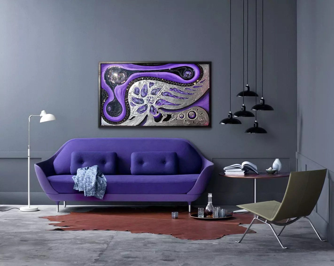 La imagen en el lienzo se convierte en una continuación del interior o duplica los elementos decorativos individuales ubicados en la habitación.