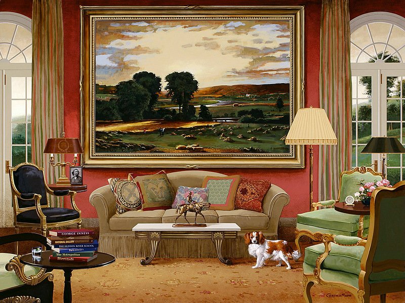 Las parcelas se seleccionan de acuerdo con el diseño de la habitación, las preferencias personales de los residentes: uno ama el realismo exclusivamente ruso como K. Bryullov, I. Repin, A. Savrasov, el otro, la escuela de pintura de Nueva York, que es el expresionismo abstracto, la tercera más vanguardista o surrealista.