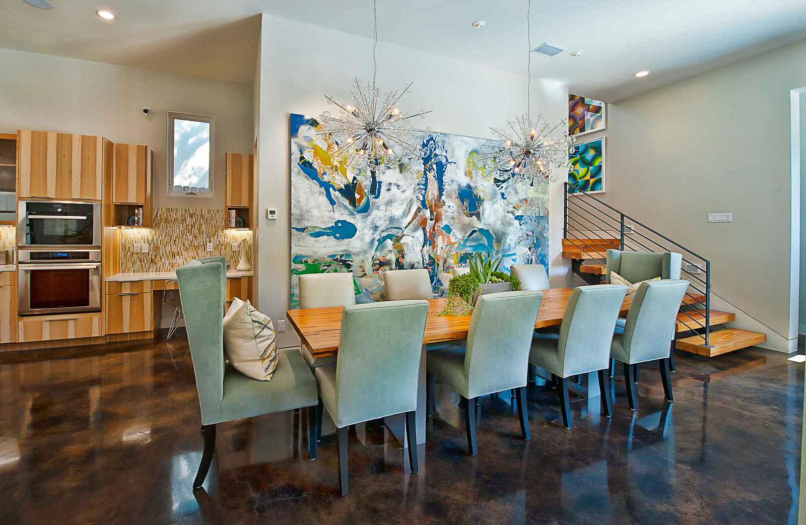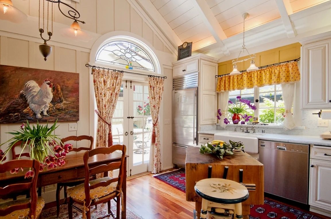 En la cocina, se recomienda colocar la composición en tonos verde-naranja, rojo-amarillo: la composición debe estimular el apetito, estimular una cocción más rápida. De los artistas recomendados P. Cezanne, G. Klimt, P. Gauguin.