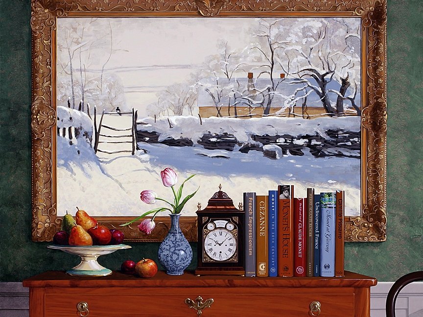 naturaleza muerta: una composición de varios objetos inanimados (platos, frutas, libros, cortinas), generalmente ubicados en una mesa, ventana, cualquier otra superficie;