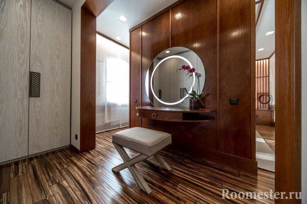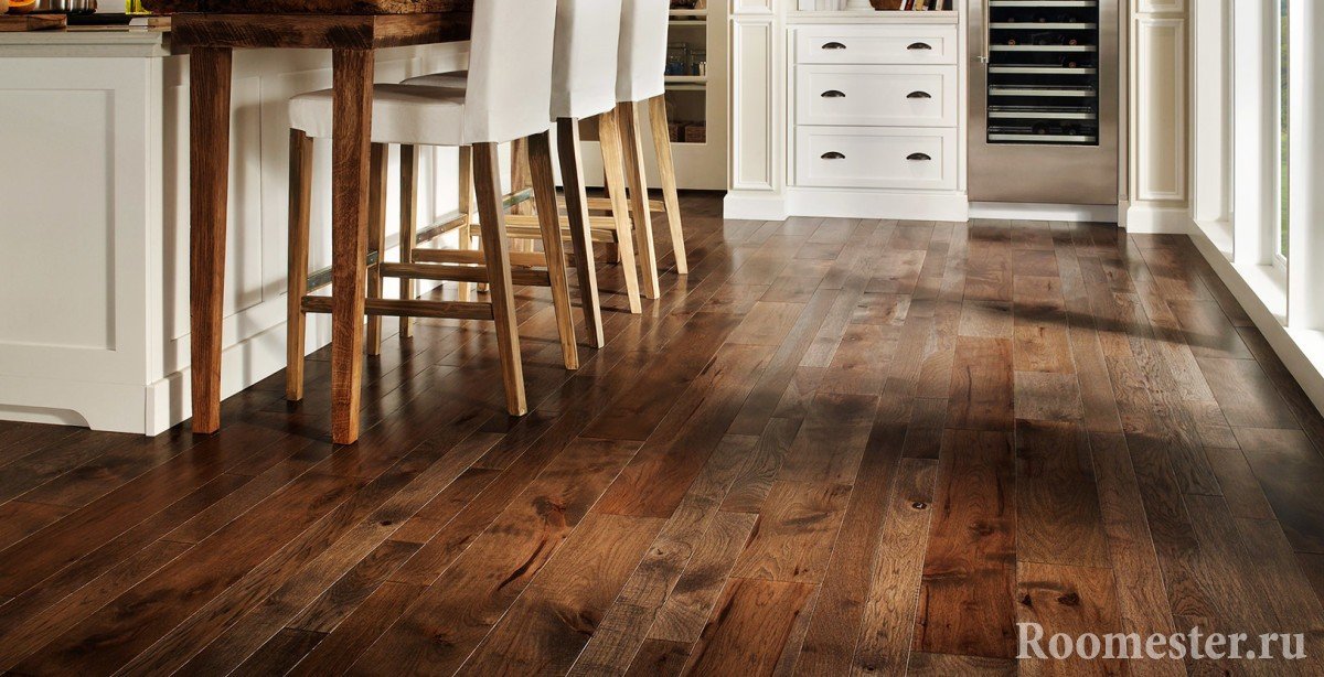 Una vez decidido el color, debe mirar el revestimiento de barniz, que puede ser sedoso, mate o brillante. Para habitaciones grandes, el parquet con un acabado brillante es mejor, la versión mate se verá genial en habitaciones pequeñas. Es razonable usar pisos sedosos y mate en las oficinas, ya que se considera más resistente al desgaste.