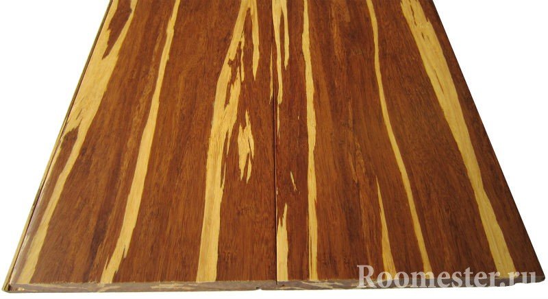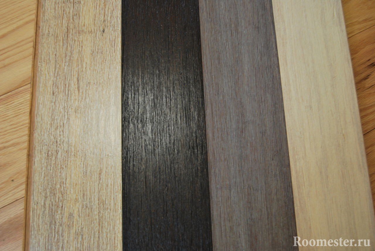 Dado que el bambú es un material natural, son posibles algunas diferencias en los tonos de color de los paneles de parquet. Si aborda el proceso de diseño de manera creativa, entonces este defecto puede convertirse fácilmente en una virtud, creando un dibujo de piso original a partir de esquemas de color.