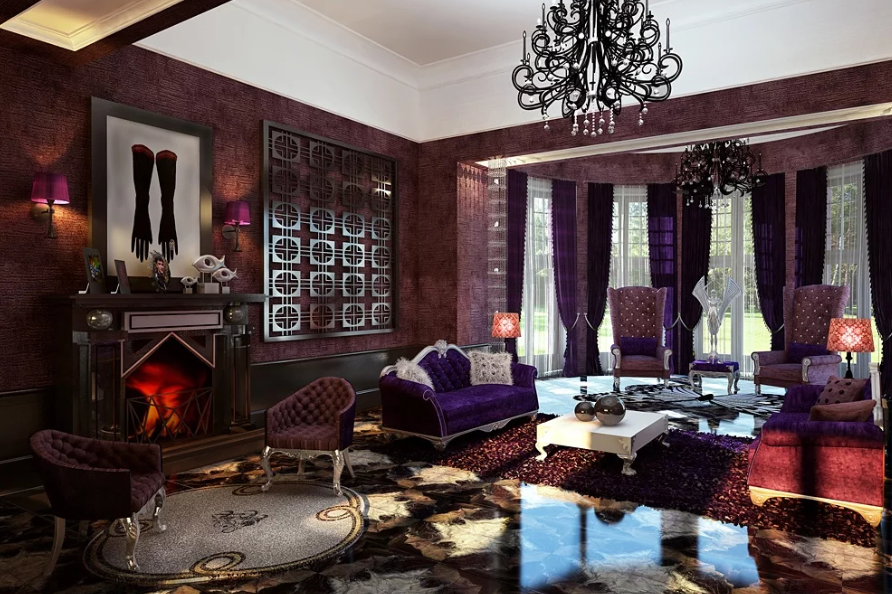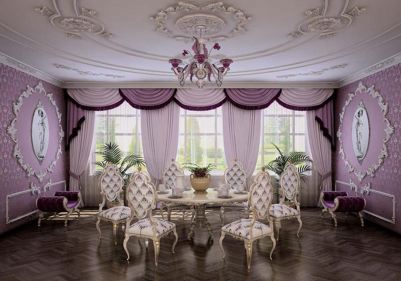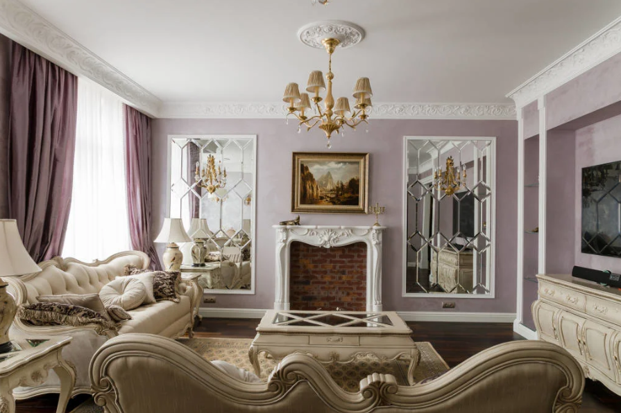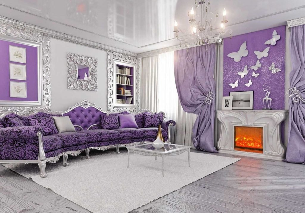 La paleta lila fue popular en el siglo XVII. El estilo barroco reinaba en el diseño de las habitaciones. El color combina bien con el estilo exuberante, aristocrático, rico y sofisticado.