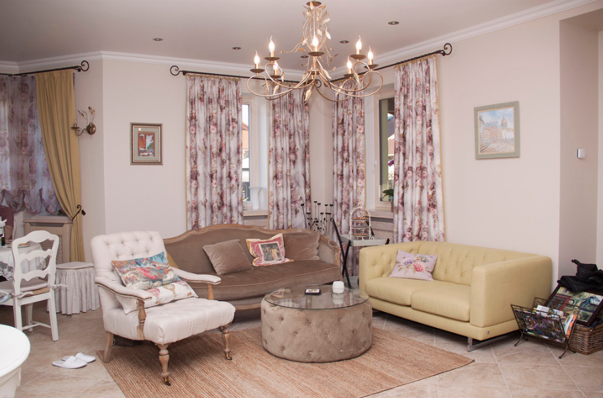 Provenza En la sala de estar, en el espíritu de la Provenza, las lámparas modestas pero elegantes deben ser concisas, sin monogramas ni florituras. La naturalidad y la simplicidad son las principales características de este estilo.