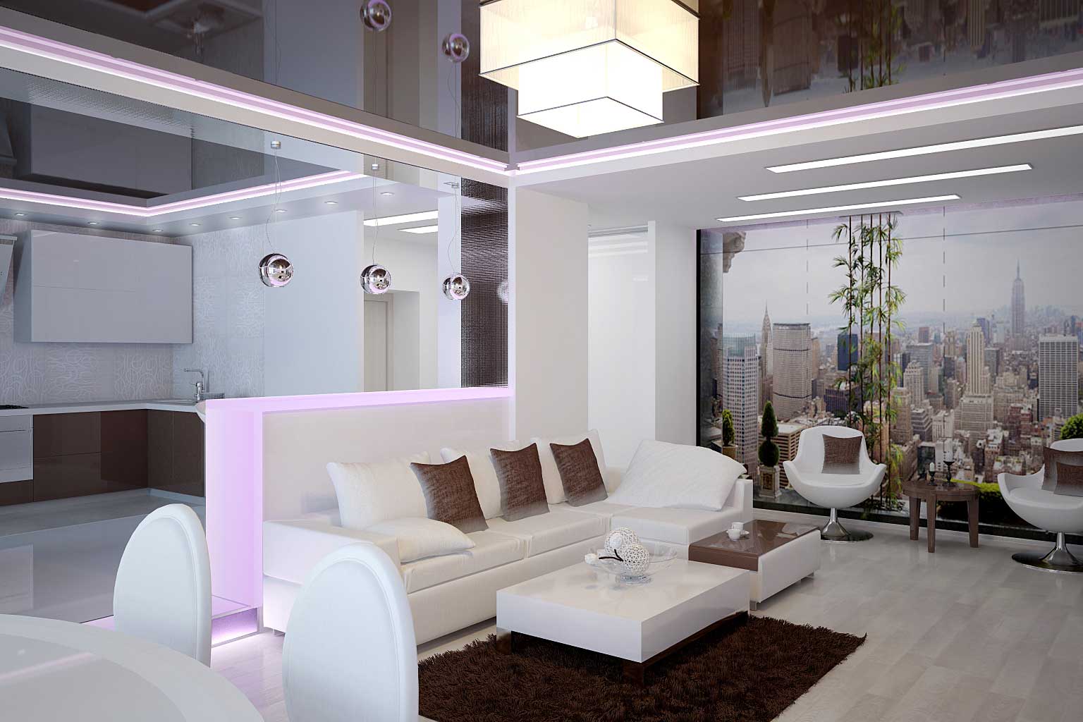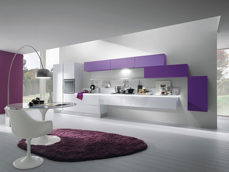 De alta tecnología. A pesar de la naturaleza soñadora y romántica, la lila se adapta fácilmente a una alta tecnología moderna, elegante, tecnológica y estricta. Aquí se manifiesta una compatibilidad inusualmente armoniosa del color con el metal, las superficies de cromo y el vidrio. Es aconsejable usar tonos profundos: amatista, orquídea oscura, azul-lila, púrpura.