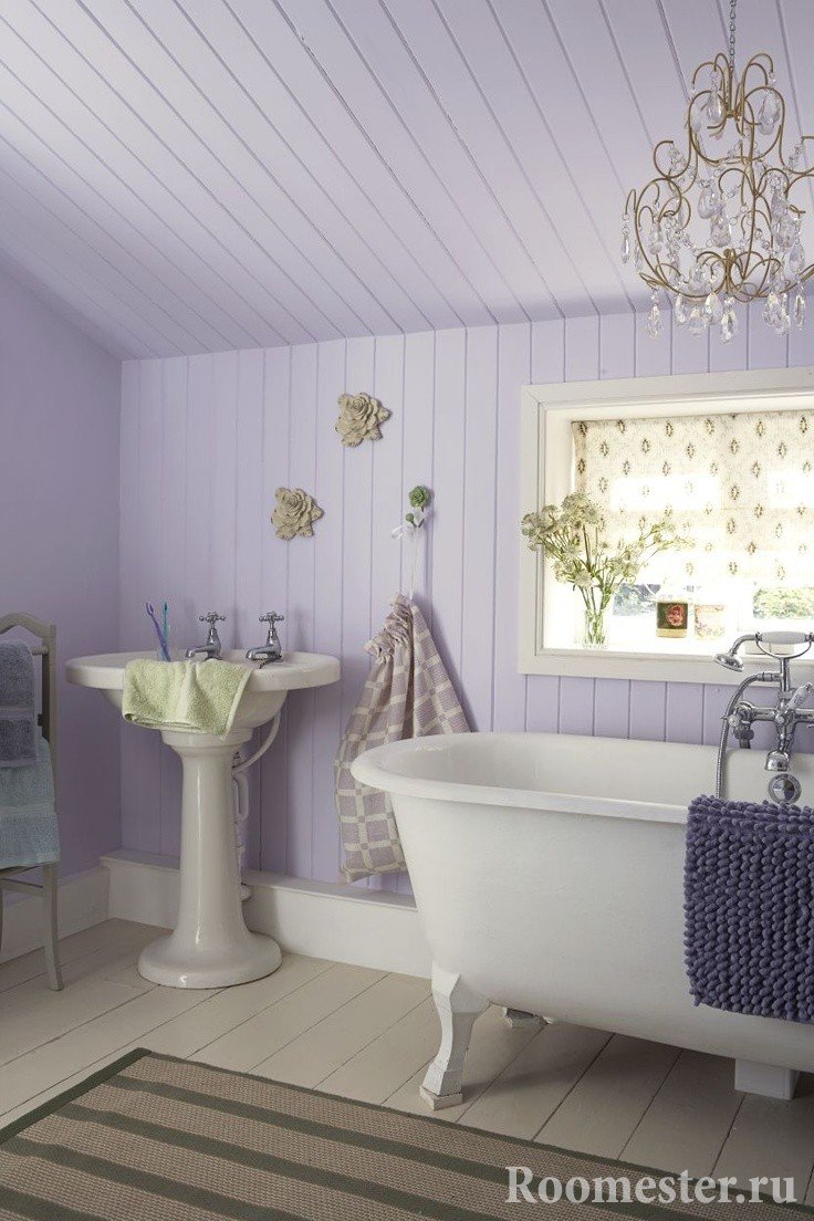 El lugar de la zona de confort reforzada: los psicólogos dicen que la lila tiene un efecto calmante: un azulejo húmedo o un baño no se verán afectados por cambios significativos de color.