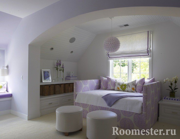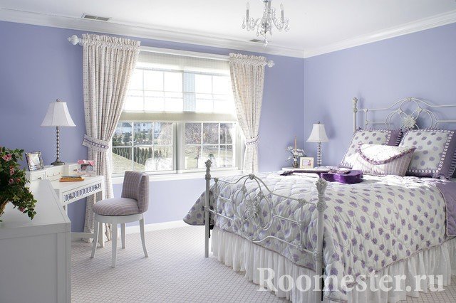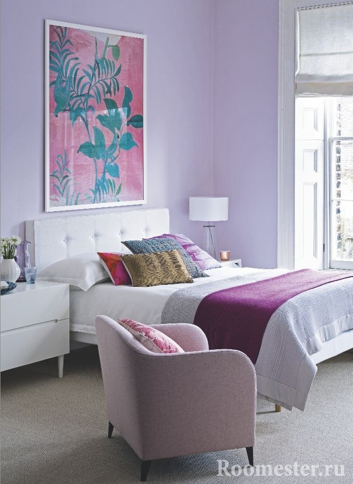Si los tonos lilas se dividen condicionalmente en grupos, habrá 3 tonos principales: tonos de cama cálidos, colores intensos saturados y brillantes. Los tonos cálidos de color lila se pueden usar como el color principal de la habitación, especialmente si se trata de un dormitorio o una guardería.Tales tonos actúan de manera relajante, ayudan a relajarse.