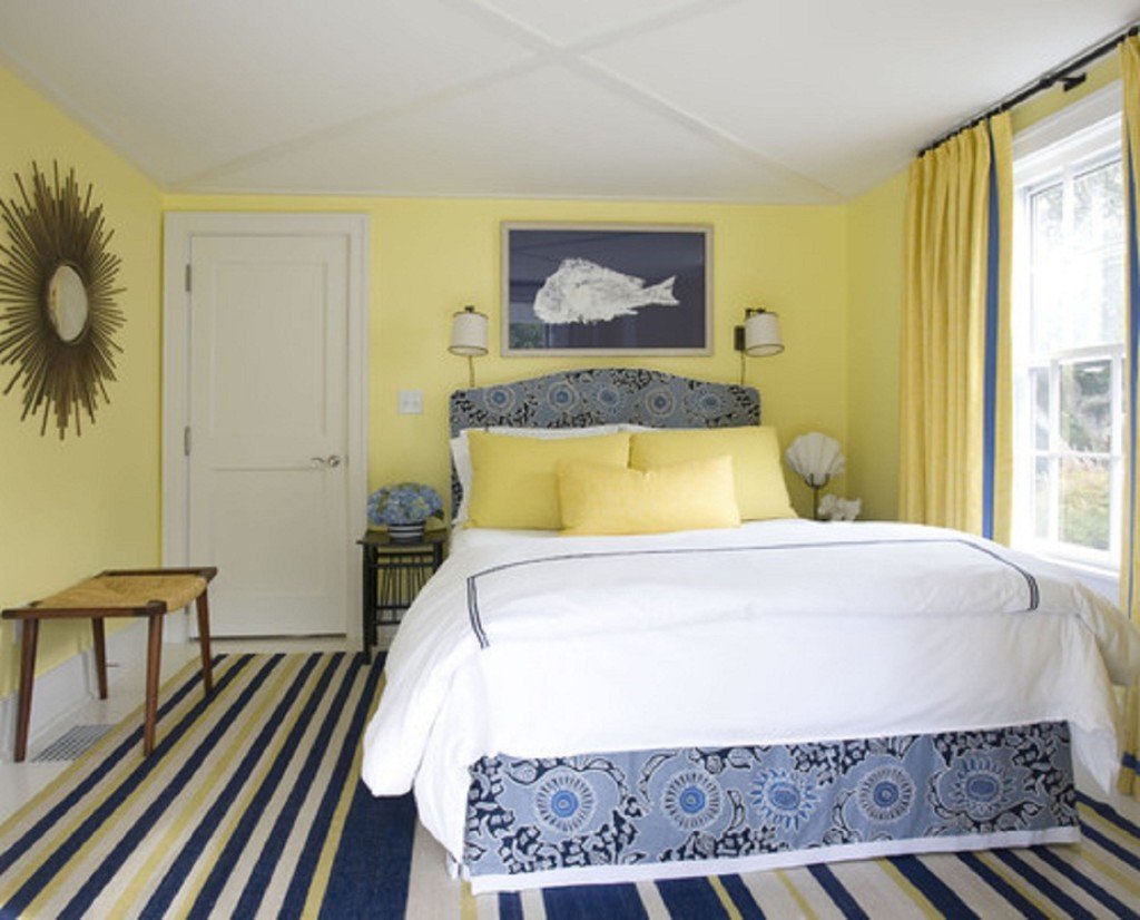 Para relajarse, puede decorar la habitación con pinturas de color crudo. Este es un color natural, que incluye amarillo, beige, crema, pero este tono no implica una atmósfera romántica, por lo que debe diluirse con elementos decorativos en colores activos (burdeos, rojo en una combinación llamativa con azul).