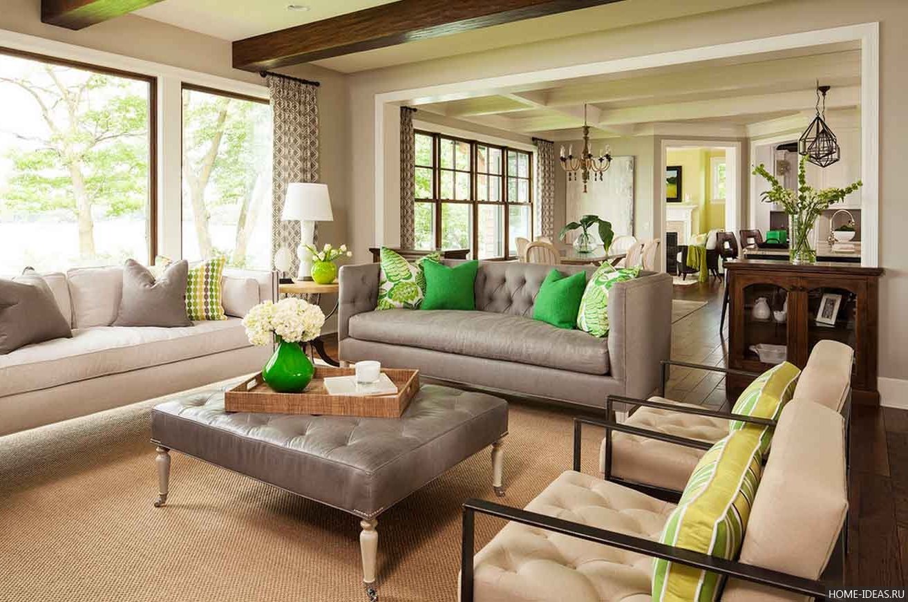 Gris, esmeralda, amarillo. En general, el gris es un buen color base para salas de estar, en esta paleta también puede convertirse en un color base. Y varias paredes decorativas pintadas con amarillo cálido llenarán la habitación con una atmósfera de alegría, calidez y confort. Un sofá con tapizado esmeralda equilibrará las paredes amarillas.Los elementos decorativos esmeralda y gris ayudarán a combinar armoniosamente los detalles interiores.