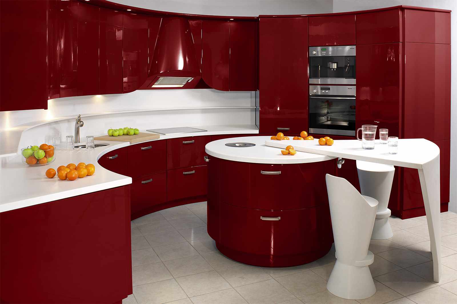 Gracias a la tecnología, las fachadas de las cocinas dejaron de ser de madera.MDF pintado, el uso de películas multicolores eliminó todo tipo de restricciones en los colores de los muebles de cocina. Habiendo elegido fachadas brillantes, es mejor pintar las paredes en tonos neutros. En la cocina, los detalles son de gran importancia, para brindar comodidad, contrastando textiles y utensilios hechos en tonos de una temperatura diferente a la que se pueden colocar los auriculares.