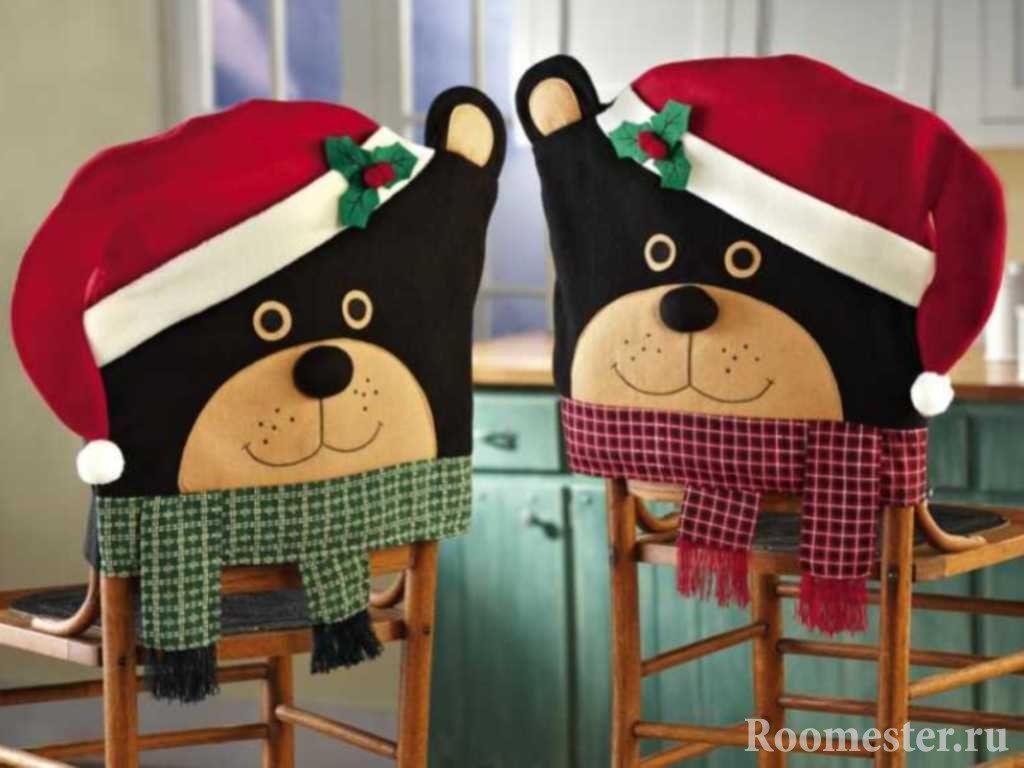 El fieltro es familiar para todas las costureras. Es muy fácil trabajar con este material, por lo que a menudo se usa para decoración festiva. En previsión de cualquier evento, las fundas en los respaldos de las sillas hechas de fieltro, hechas con el tema de las vacaciones, serán una gran adición y decoración.