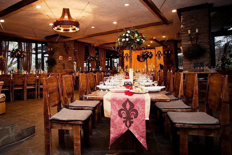 El lugar apropiado. La opción ideal es un restaurante construido como un castillo o una mansión de piedra rústica. Si no hay tales lugares cerca, puede encontrar una institución cuyo interior está lleno de madera y piedra. También puede realizar la ceremonia al aire libre armando una carpa.