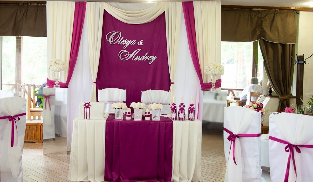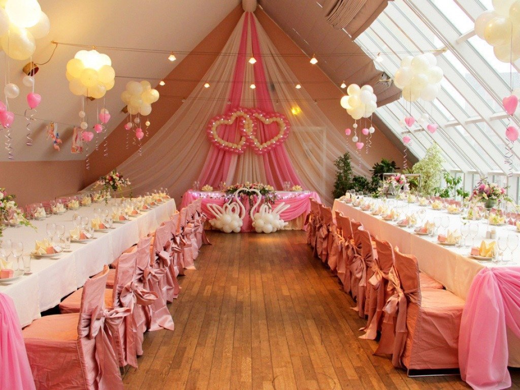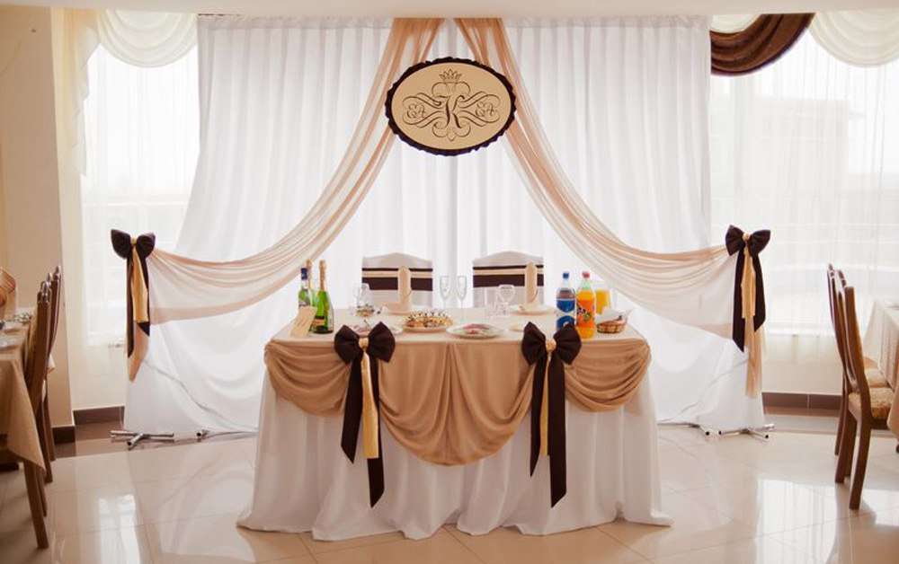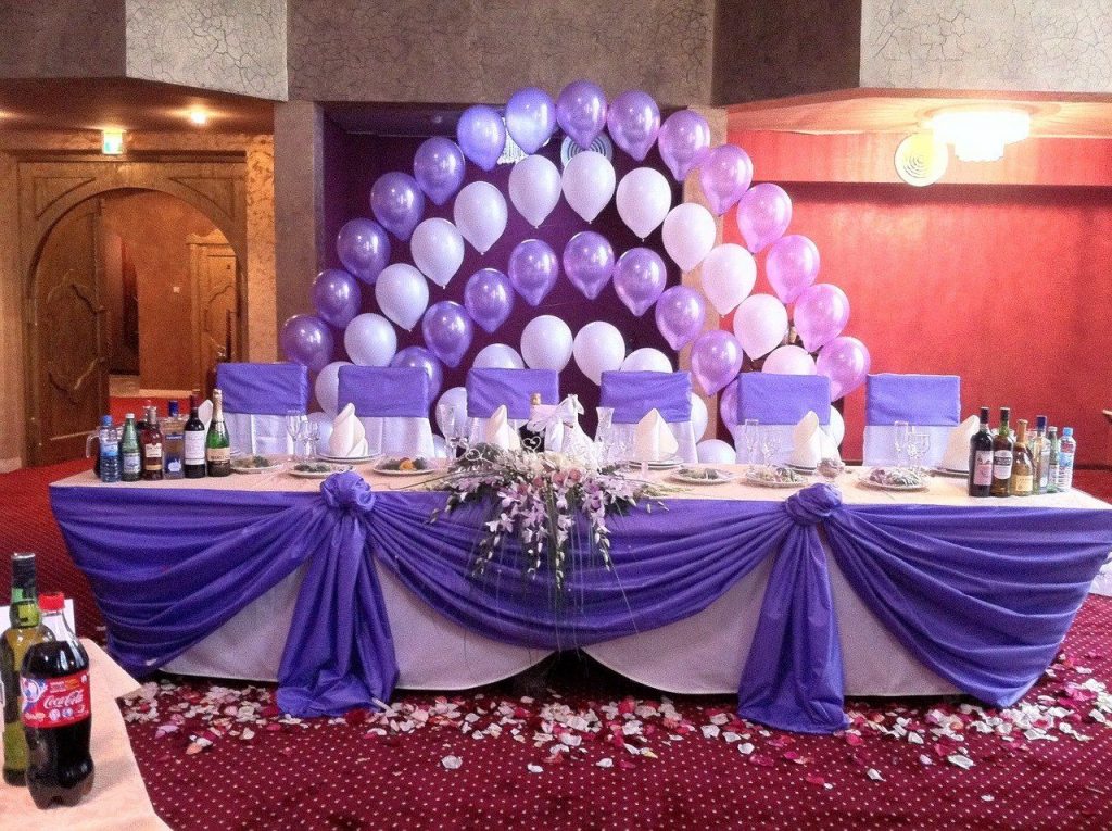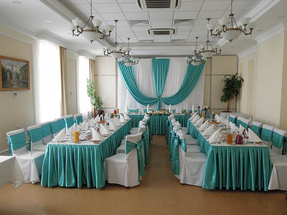 El salón de bodas es el corazón de la ceremonia. Es aquí donde los invitados felicitan a los jóvenes, les dan discursos de despedida y los acompañan a una vida familiar feliz. En el salón del restaurante, el esposo y la esposa bailan su primer baile, mostrando al mundo entero sus sentimientos sinceros. La decoración de la sala es un momento crucial, que debe abordarse con bastante seriedad. Para la decoración de la sala se utilizan: